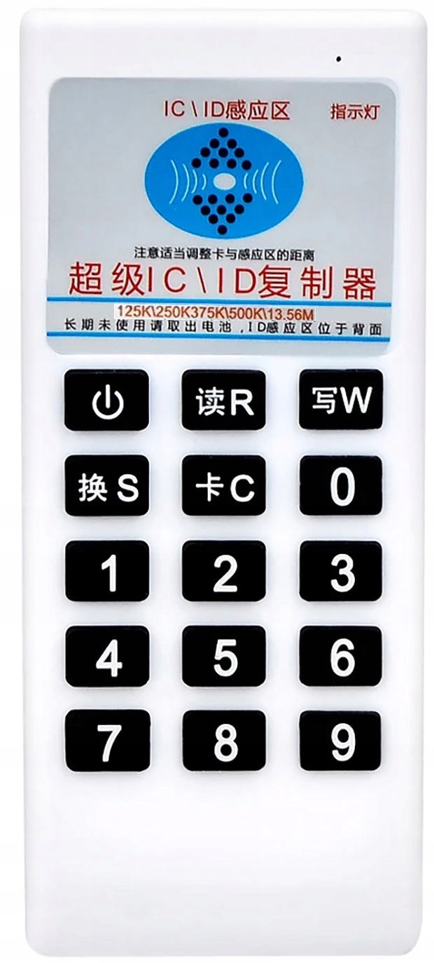 Если вы не знаете какие необходимая частота для вашего брелока - поднесите брелок/карту к верхней наклейке с синим знаком, нажмите кнопку R (Чтение-чтение) - будет считана частота: