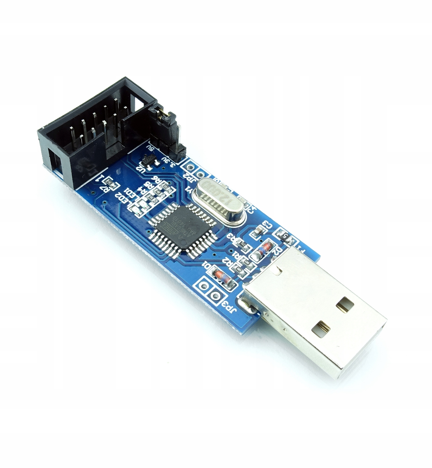 Он полностью совместим с программатором USBasp, созданным Томасом Фишлем.