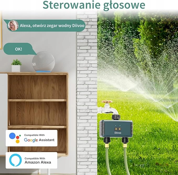 Wi -Fi 2,4 ГГц ирригационное компьютер и голосовое управление Alexa - Добавьте автоматические часы ирригации в ваш концентратор Wi -Fi с использованием приложения Smart Life (только Wi -Fi 2,4 ГГц), ирригационные часы, подключенные к воротам, до 15 метров. Он совместим с Alex и Google Assistant с использованием интеллектуального голосового управления. Управляйте таймером с помощью шланга Wi -Fi, используя простую голосовую команду, такую как «Alexa, включите/отключите интеллектуальные ирригационные часы»