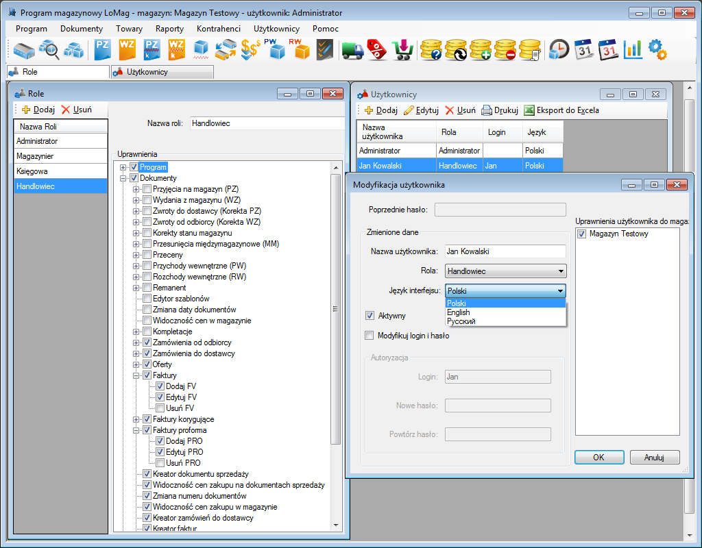 Программное обеспечение LoMag позволяет нам создавать индивидуальные учетные записи для каждого сотрудника и определять для них соответствующие полномочия