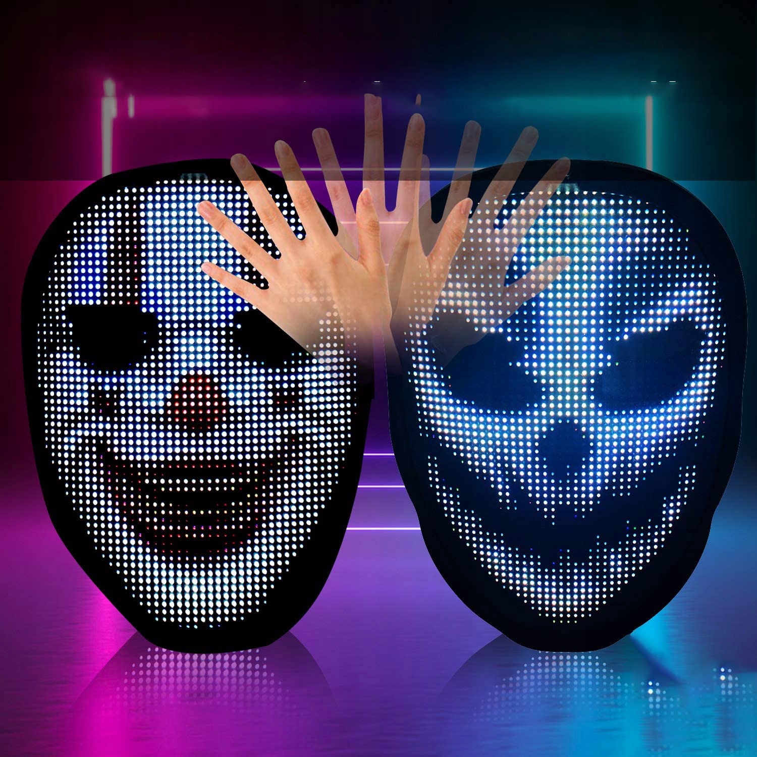 - Светодиодная маска для Хэллоуина Косплей имеет 45 динамических режимов отображения и 70 статических изображений, маска Светодиод можно настроить на одноцветный, мигающий, градиентный, плавный и многоцветный.