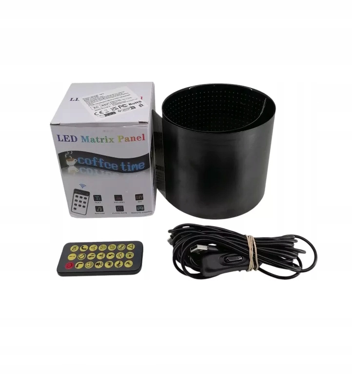 Пилот в наборе (работает с приложением ipixel), кабелем питания и коробкой.
