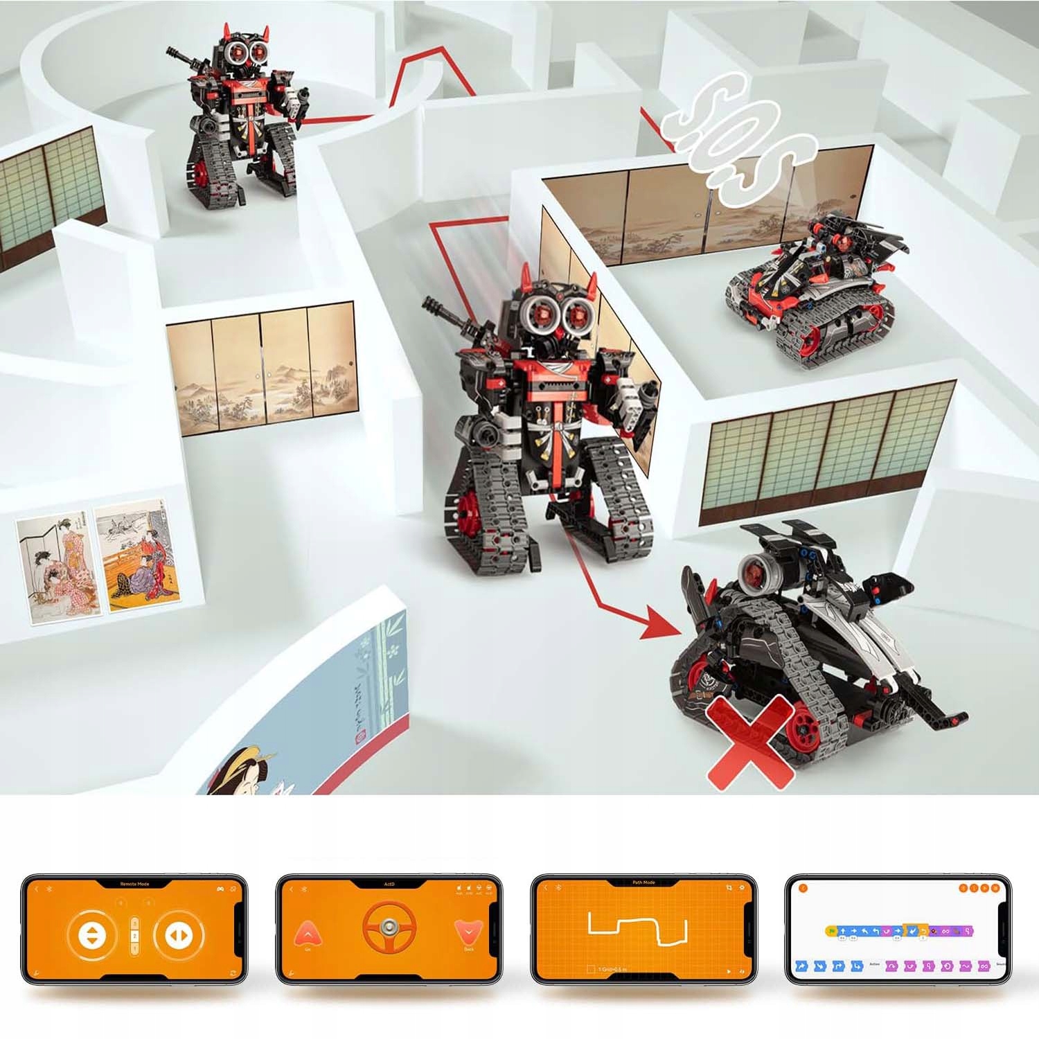 - можно контролировать, подключив Bluetooth с инновационными режимами программирования мобильного телефона, такими как дистанционное управление, режим гироскопа, режим моделирования вождения и режим навигации. Его также можно контролировать с помощью дистанционного управления 2,4 ГГц с дистанционным управлением 25 метров (расстояние управления применением составляет 9 метров).