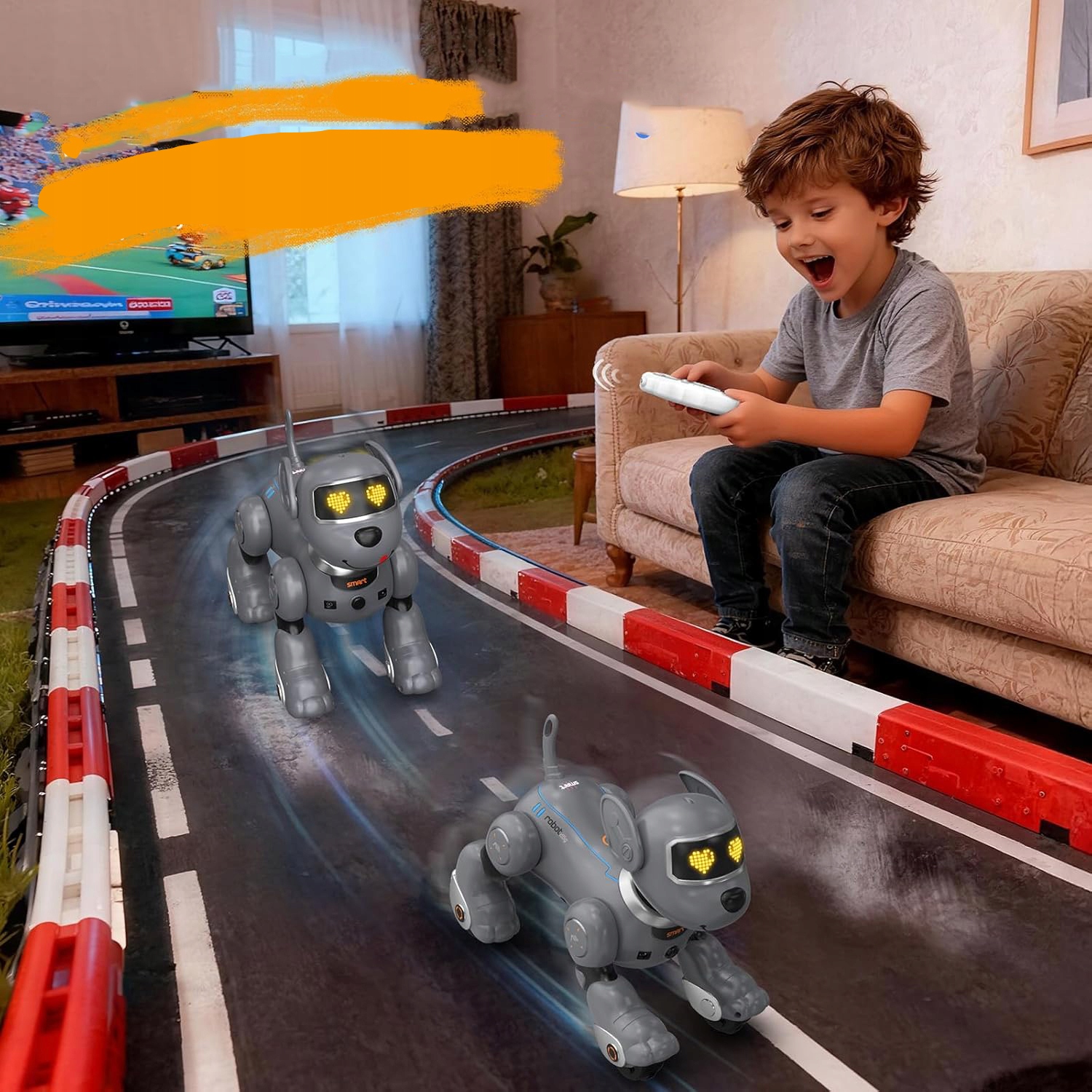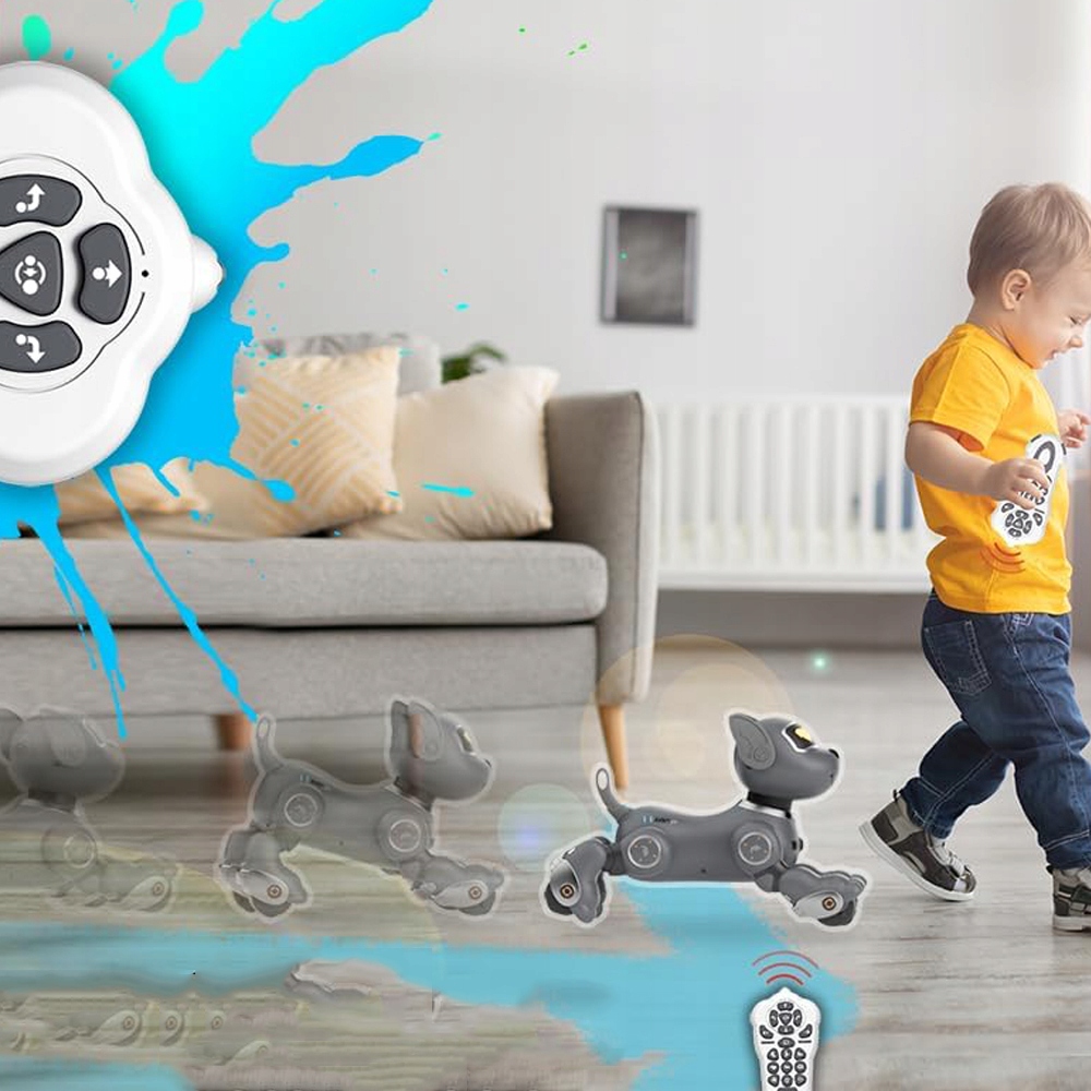 Робот-собака имеет встроенный датчик слежения, поэтому ДЕТИ МОГУТ «ГУЛЯТЬ» ЕГО КАЖДЫЙ ДЕНЬ, ВЕДЯ ЕГО К НАЗНАЧЕННОМУ РАЗМЕЩАЙТЕ И ВЫПОЛНЯЙТЕ РАЗЛИЧНЫЕ ВЕСЕЛЫЕ ШАГИ.