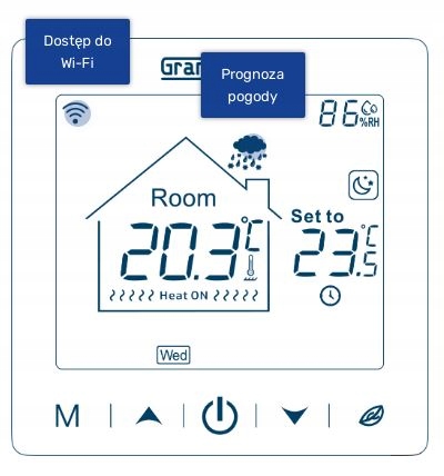 Для вашего удобства на терморегуляторе есть прогноз погоды (солнечно/дождливо/облачно/снег)