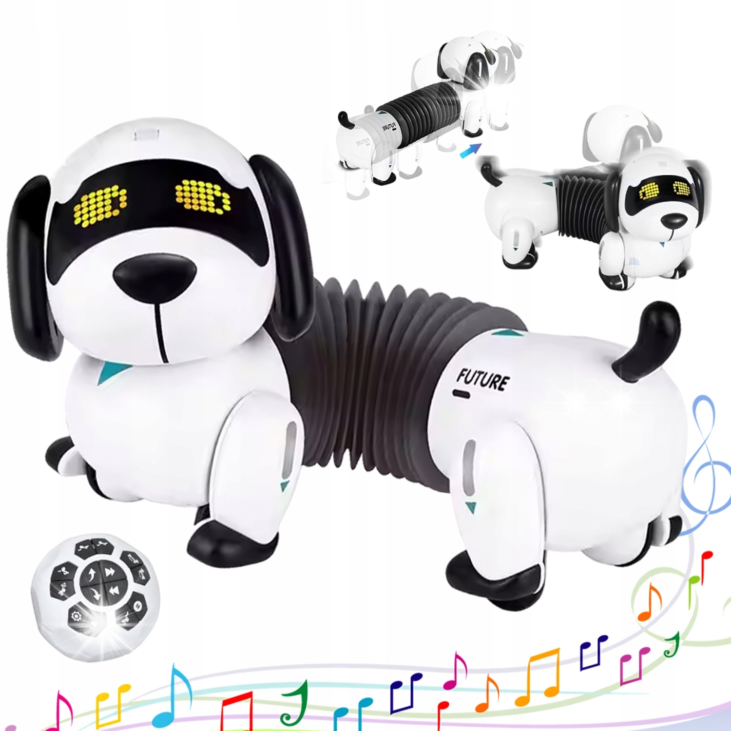 Когда вы нажимаете кнопку «Следуй за мной» на пульте дистанционного управления, собака-робот определяет ваше положение и следует за вами на каждом этапе пути. Кроме того, вы также можете использовать пульт дистанционного управления или запрограммированную собаку, чтобы танцевать и петь, пусть ваш ребенок и собака-робот почувствуют радость музыки и потанцуют вместе, ваш ребенок будет очень рад иметь маленького друга!