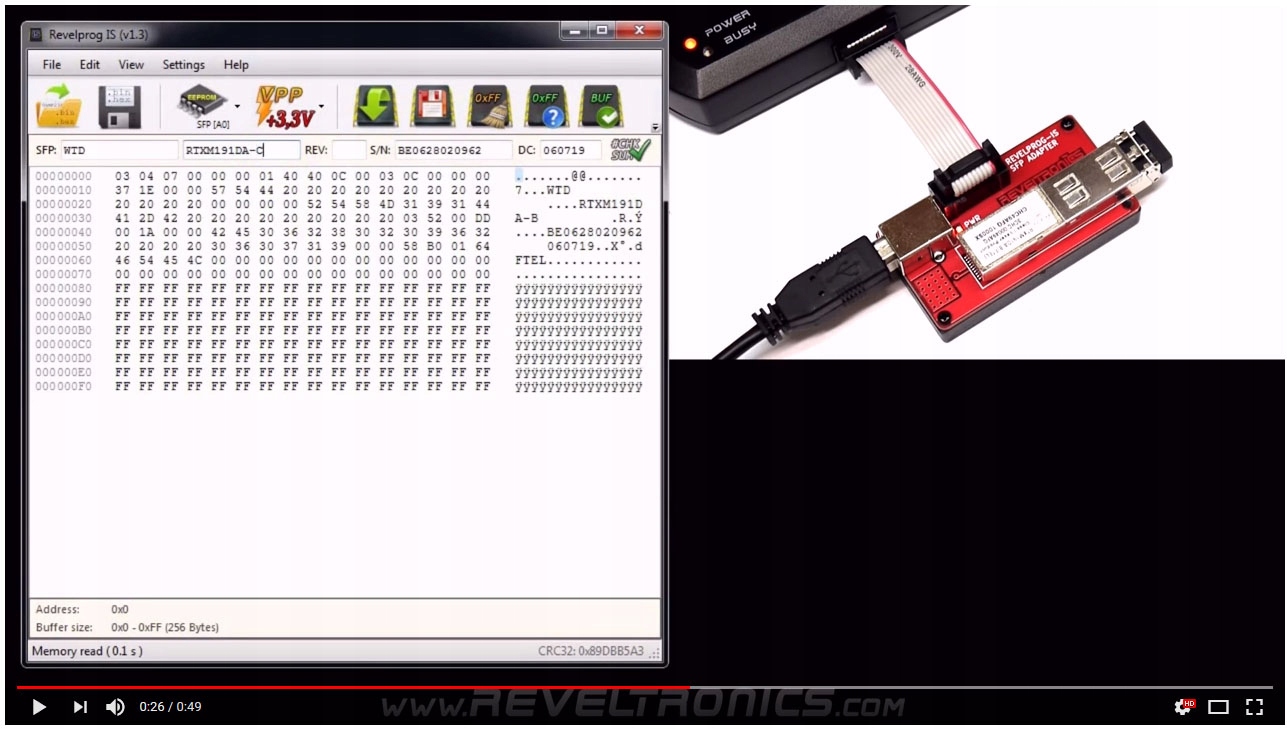 *примечание: поскольку версия v1. Обновление 8.2 для REVELPROG-IS (с 2020 года) появилась возможность программирования и защищенных модулей (требуется ввод пароля производителя). Если этот пароль отсутствует, есть шанс найти его с помощью специального инструмента перебора пароля. Более подробную информацию можно найти в руководстве REVELPROG-IS, глава, посвященная модулям SFP. Если у вас более старая версия программатора REVELPROG-IS, нет проблем – вы можете бесплатно обновить программатор до последней версии.