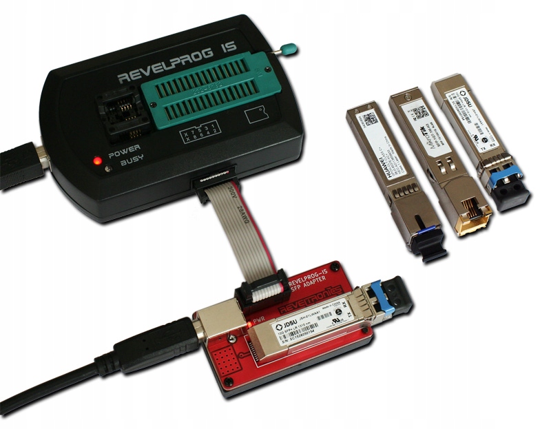 Адаптер предназначен для оптических и Ethernet-модулей SFP и SFP+. Работает с программатором REVELPROG-IS.