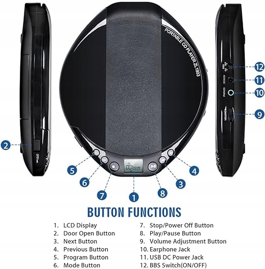 ПОРТАТИВНЫЙ CD-ПЛЕЕР С НАУШНИКАМИ Discman 4 РЕЖИМА + AUX КАБЕЛЬ