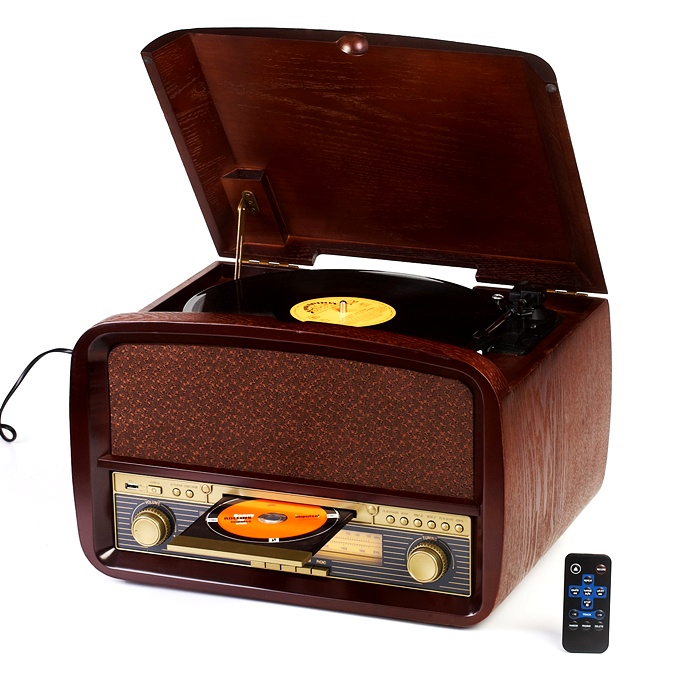 Новый, оригинально упакованный ретро-радио с поддержкой граммофонных пластинок, MP3, компакт-дисков, оснащенный USB-входом