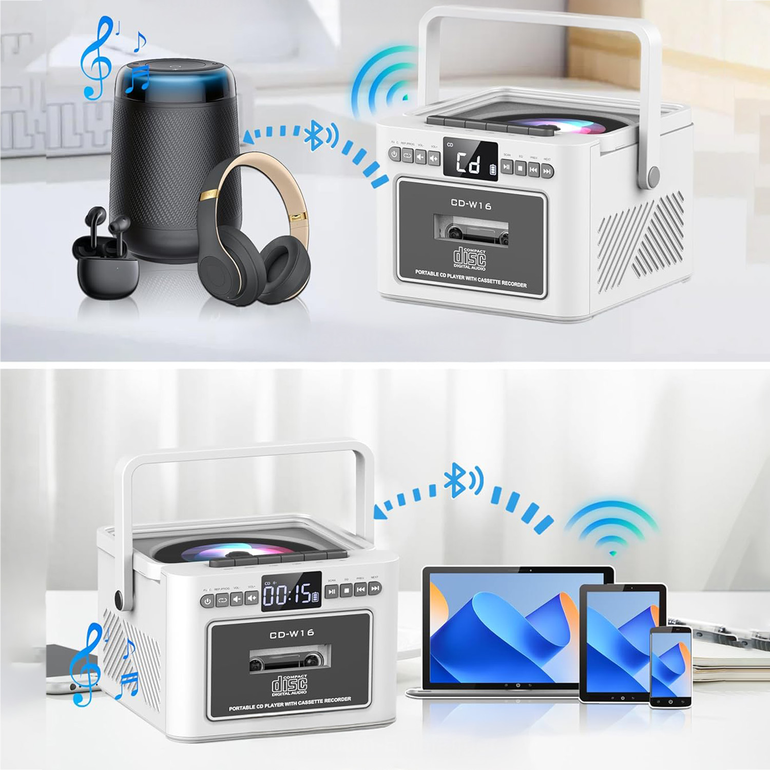 Кассетный проигрыватель компакт-дисков оснащен эффективной батареей емкостью 5000 мАч, заряжаемой с помощью кабеля Type-C 5 В/2 А. После 10 часов зарядки он может работать до 5 часов. Этот проигрыватель компакт-дисков подходит для использования как в помещении, так и на открытом воздухе. Попрощайтесь с надоедливой постоянной заменой аккумулятора и наслаждайтесь непрерывным воспроизведением музыки в любое время и в любом месте.