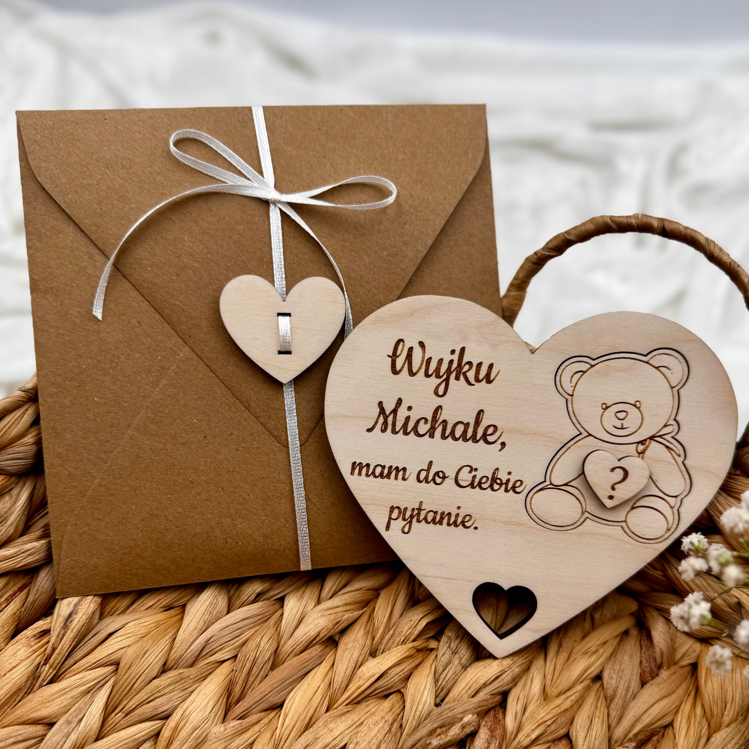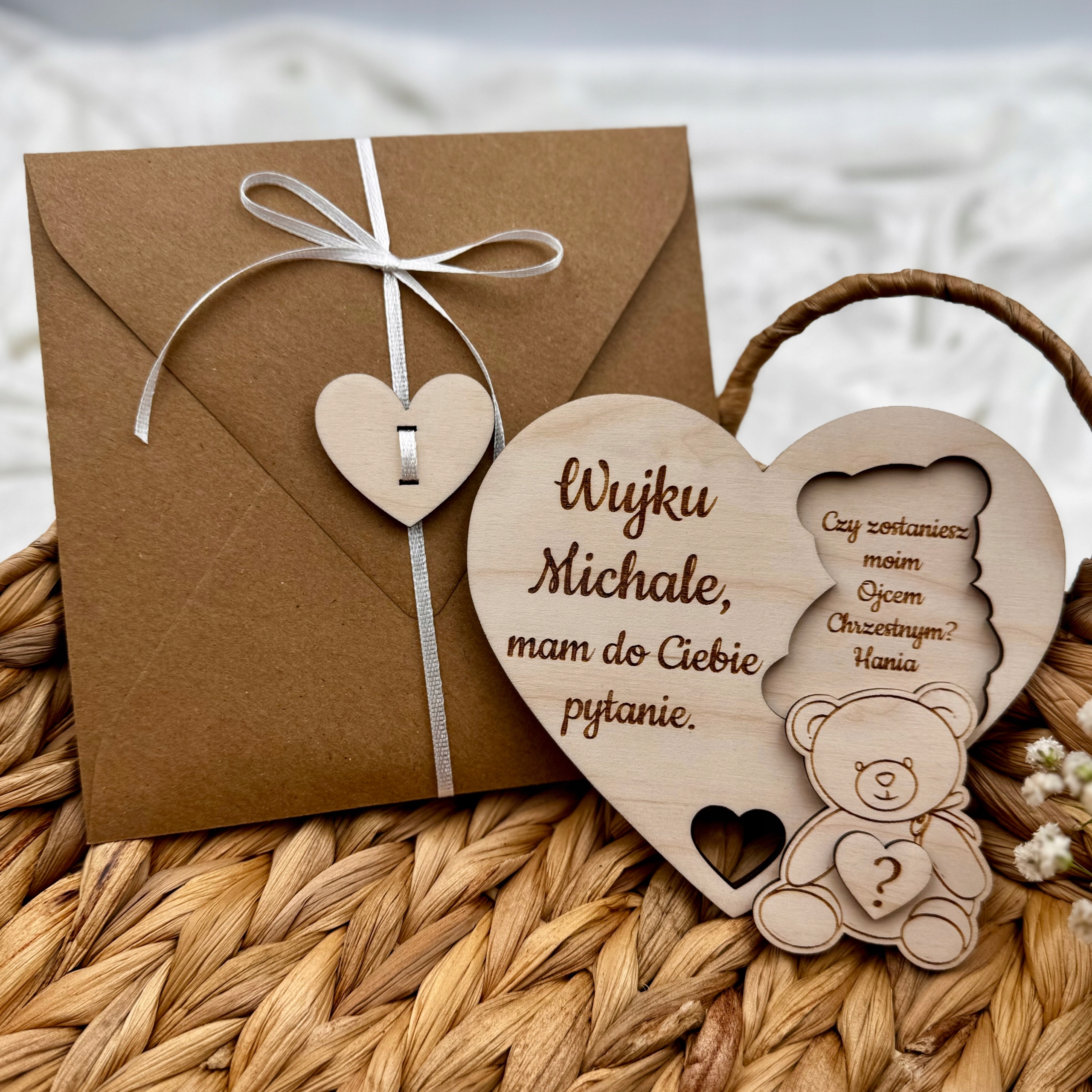 ❤️Предлагаем уникальное предложение узнать о том, как стать крестным отцом - сердечко с вырезанным плюшевым мишкой изготовлен из дерева высочайшего качества.