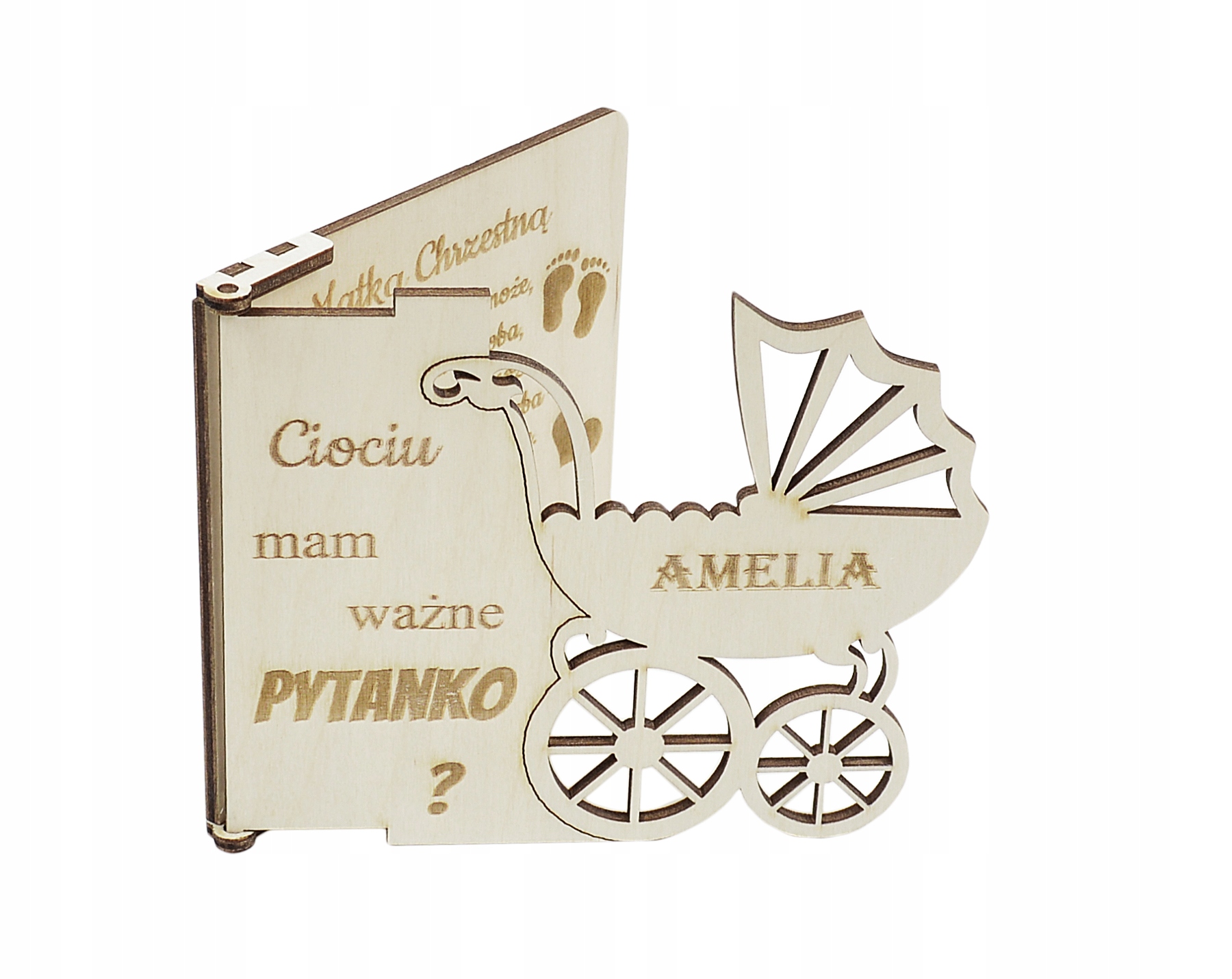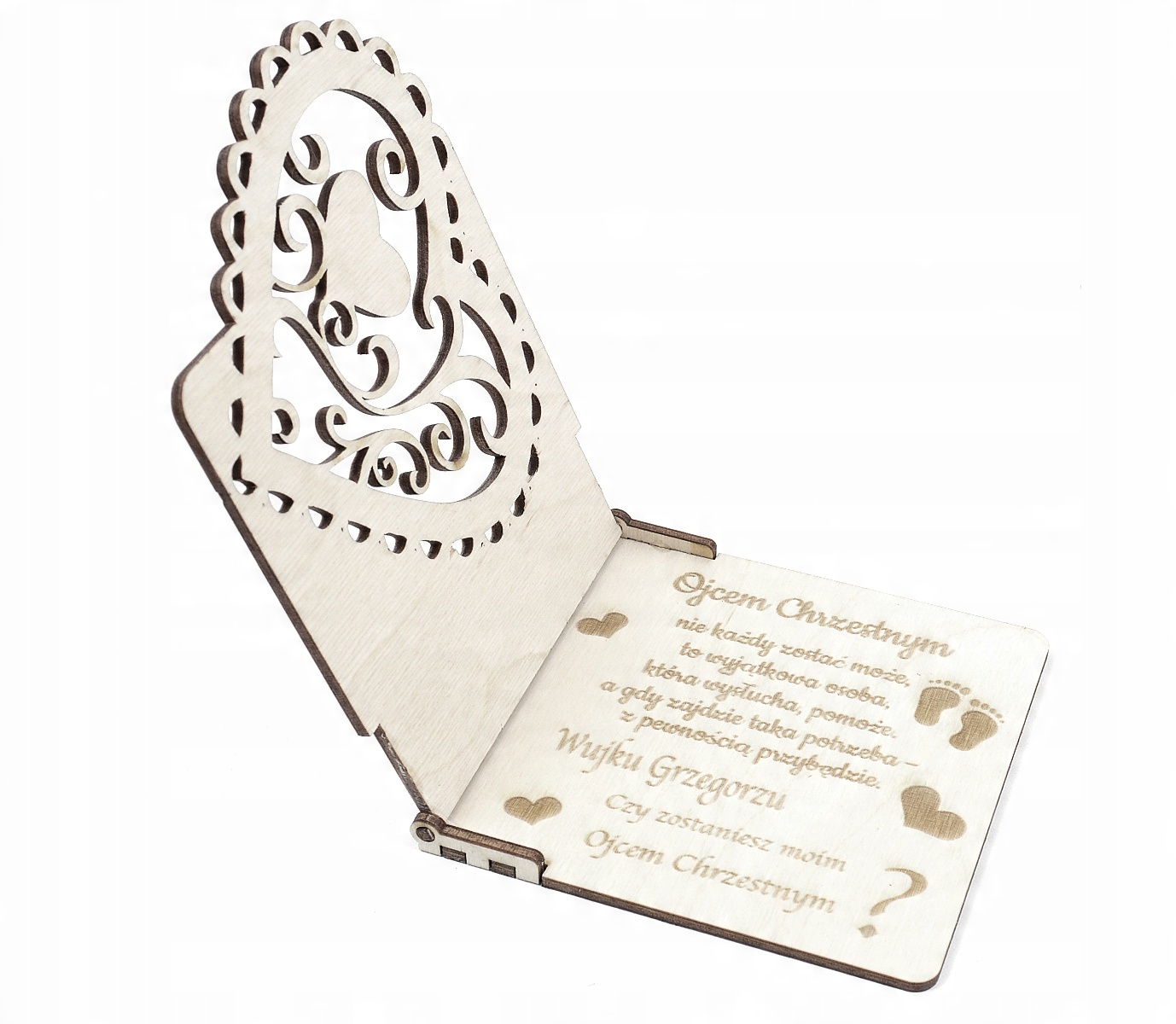 В аукционе ниже мы представляем Вам Запрос будущей Маме или Крестному Отцу Вашего ребенка в виде деревянной открытки. . Гравировка имен на деревянной карточке и чудесное посвящение, несомненно, станет сувениром на очень долгое время. Этот подарок вызовет улыбку на лице каждого получателя.