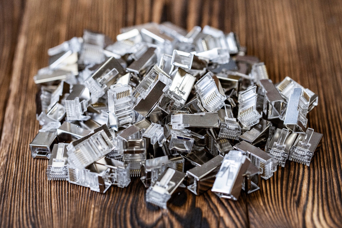 Восьмиконтактные сетевые разъемы RJ45, выполненные в системе Pass Through. Используется для оконцовки витой пары в компьютерных сетях. Они гарантируют намного лучшее и более точное обжатие, чем традиционные вилки.