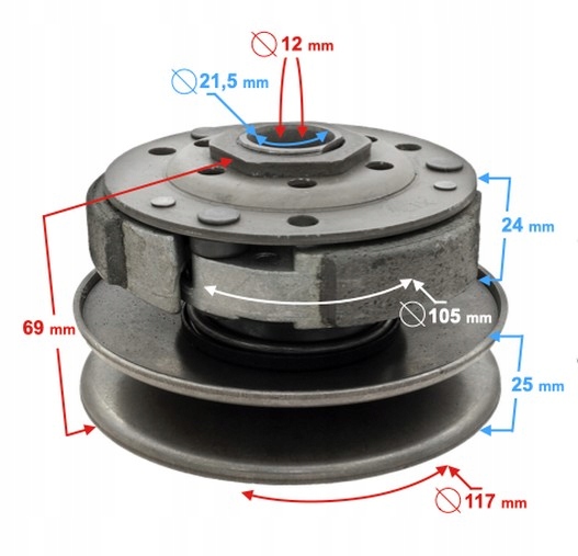Центробежный сцепление, включая челюсти для сцепления, колокол сцепления. Приводной ремень, уплотнение для крышки. Комплект скутера: