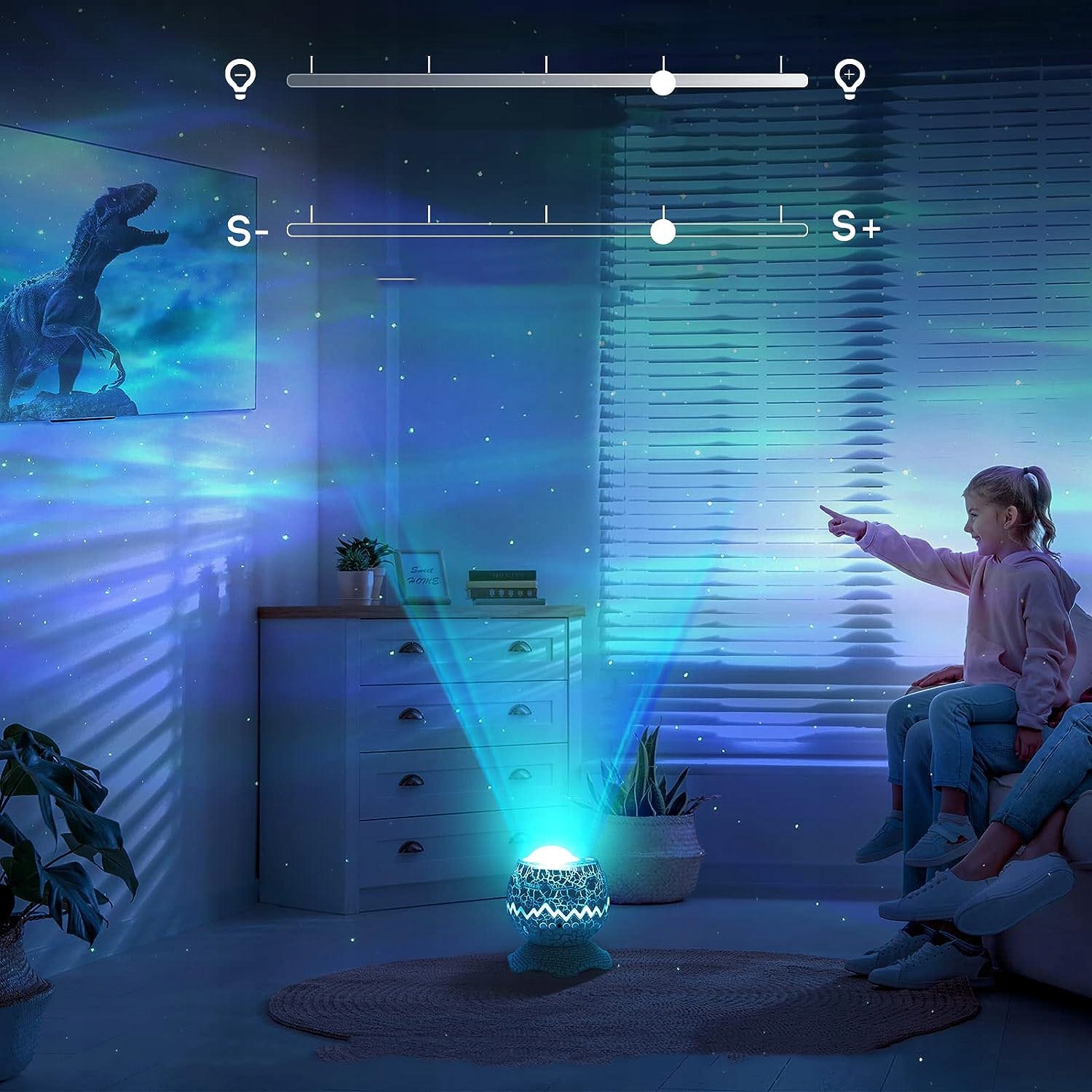 Спасибо вдумчивому дизайну, The The Лампа выглядит как яичный динозавр, свет стреляет из рисунка трещин, как будто свет жизни процветал и дает людям своего рода отражение: маленький динозавр внутри сразу выходит из рукава! b> 🌌✨ 【【Stary Sky + Polar Light】