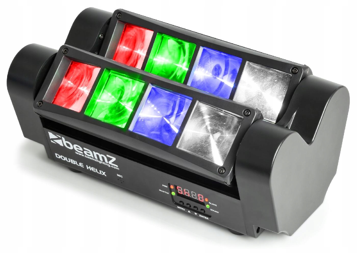 MHL820 Double Helix — универсальный световой эффект от BeamZ. Устройство состоит из двух подвижных полосок с четырьмя светодиодами мощностью по 3 Вт каждая. Правильно запрограммированные световые шоу позволяют оборудованию свободно работать в автоматическом или звуковом режиме. Дополнительно есть возможность управлять эффектом с помощью DMX. Идеальный свет для клубов, пабов и мобильных диджеев или групп.