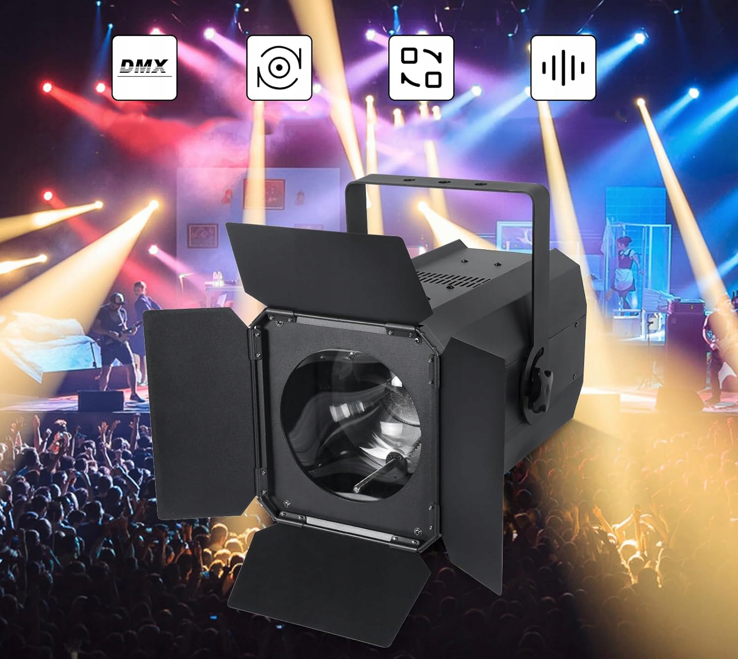 【Регулируемые ворота】Сценический проектор COB DJ, оснащенный регулируемыми воротами, позволяет контролировать направление света, уменьшает ненужное рассеяние света от сцены или архитектурных элементов и может быть установлен под углом для получения желаемого эффекта.