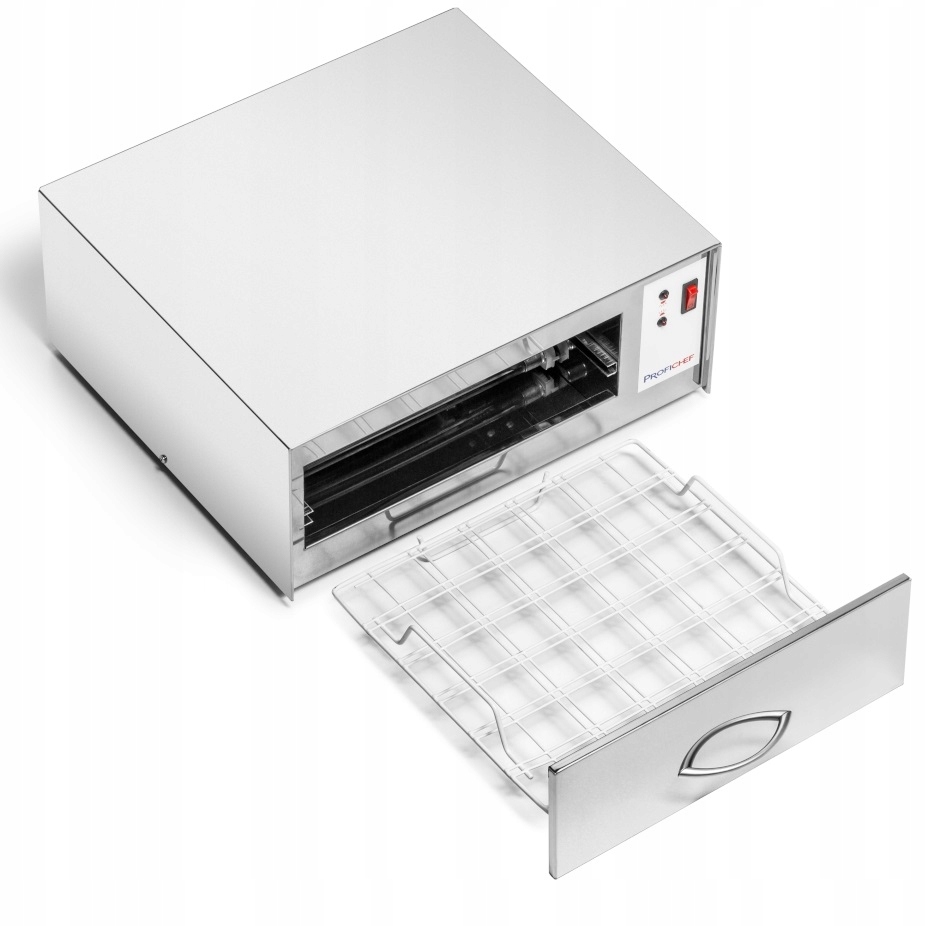 Яичный прожектор ProfiChef - устройство, предназначенное для поверхностной дезинфекции яиц одной партией в количестве 30 штук. Элементы изготовлены из нержавеющей стали, что обеспечивает высокую долговечность и гигиеничность использования. 100% эффективность процесса дезинфекции обеспечивают 2 лампы PHILIPS TUV мощностью 16 Вт, излучающие УФ-С излучение с длиной волны 253,7 нм. При облучении излучение эффективно уничтожает бактерии и микроорганизмы на поверхности яиц. Сальмонелла, кишечная палочка, аэробные палочки, бактерии кишечной палочки, кокки и грибки нейтрализуются всего за 90 секунд!