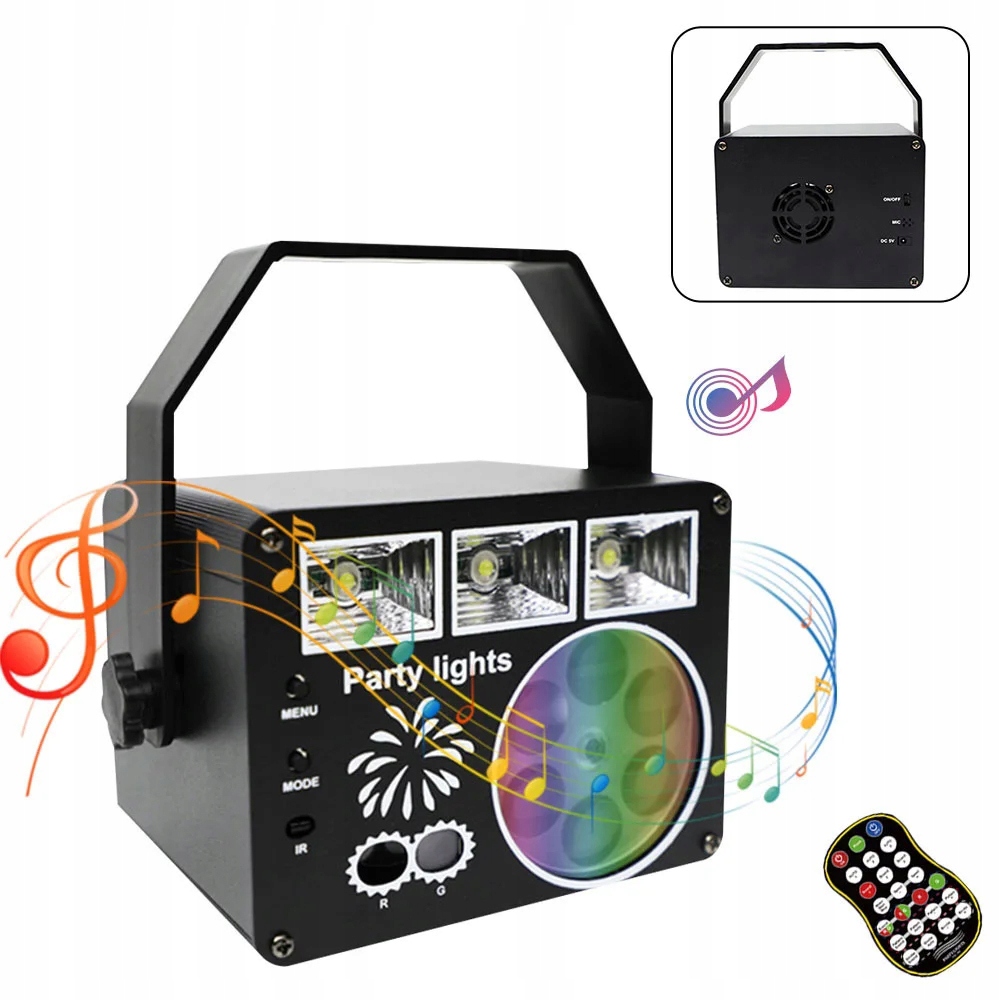 PROJEKTOR DYSKOTEKOWY REFLEKTOR DISCO LASER LED RGB NA IMPREZE + PILOT