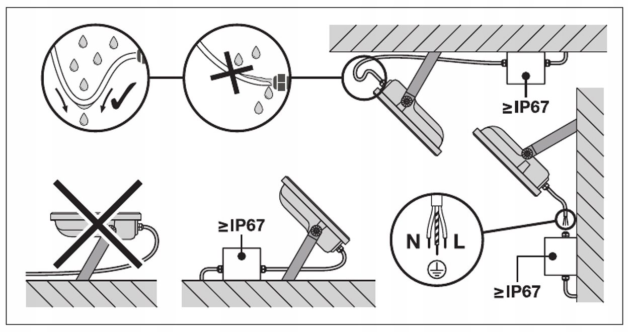 - Предварительно установлен гибкий кабель длиной 1 м (H05RN-F), 3 x 1,0 мм²