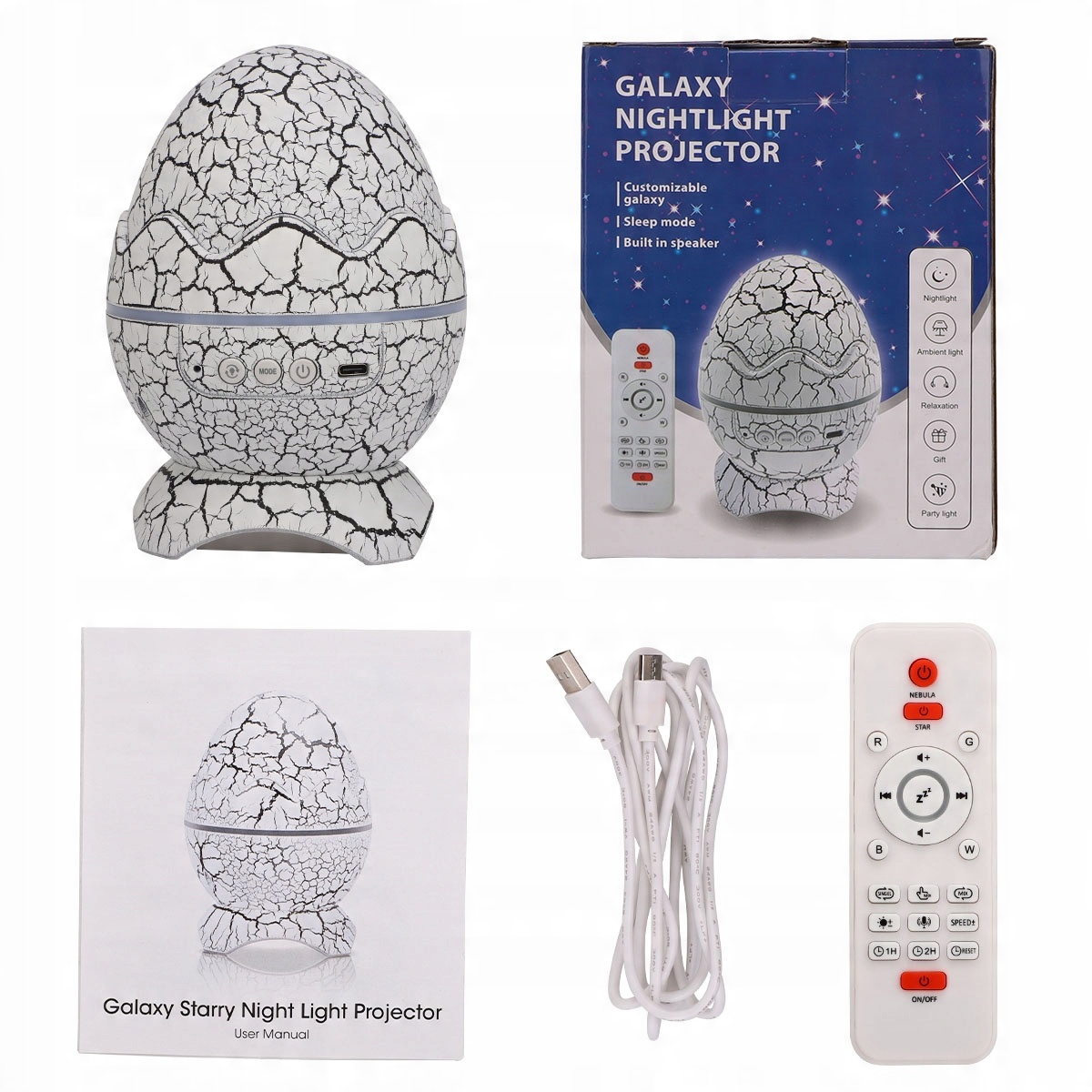 PROJEKTOR GWIAZD jajo dinozaura z GŁOŚNIK Lampka Nocna Rzutnik Led Laserowy