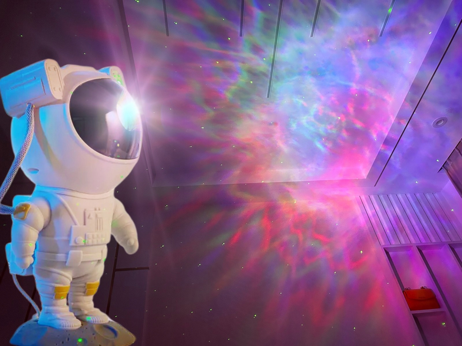Здравствуйте! Предлагаем необычный звездный проектор в виде космонавта. Этот инновационный продукт позволит вам создать волшебную атмосферу и придать неповторимое настроение вашей комнате, гостиной или другому пространству.