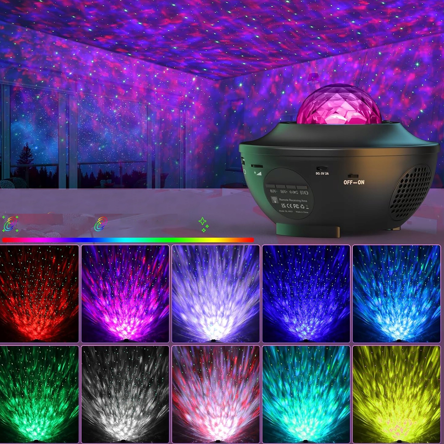 PROJEKTOR GWIAZD RZUTNIK NIEBA LAMPKA NOCNA LED GŁOŚNIK BLUETOOTH + PILOT
