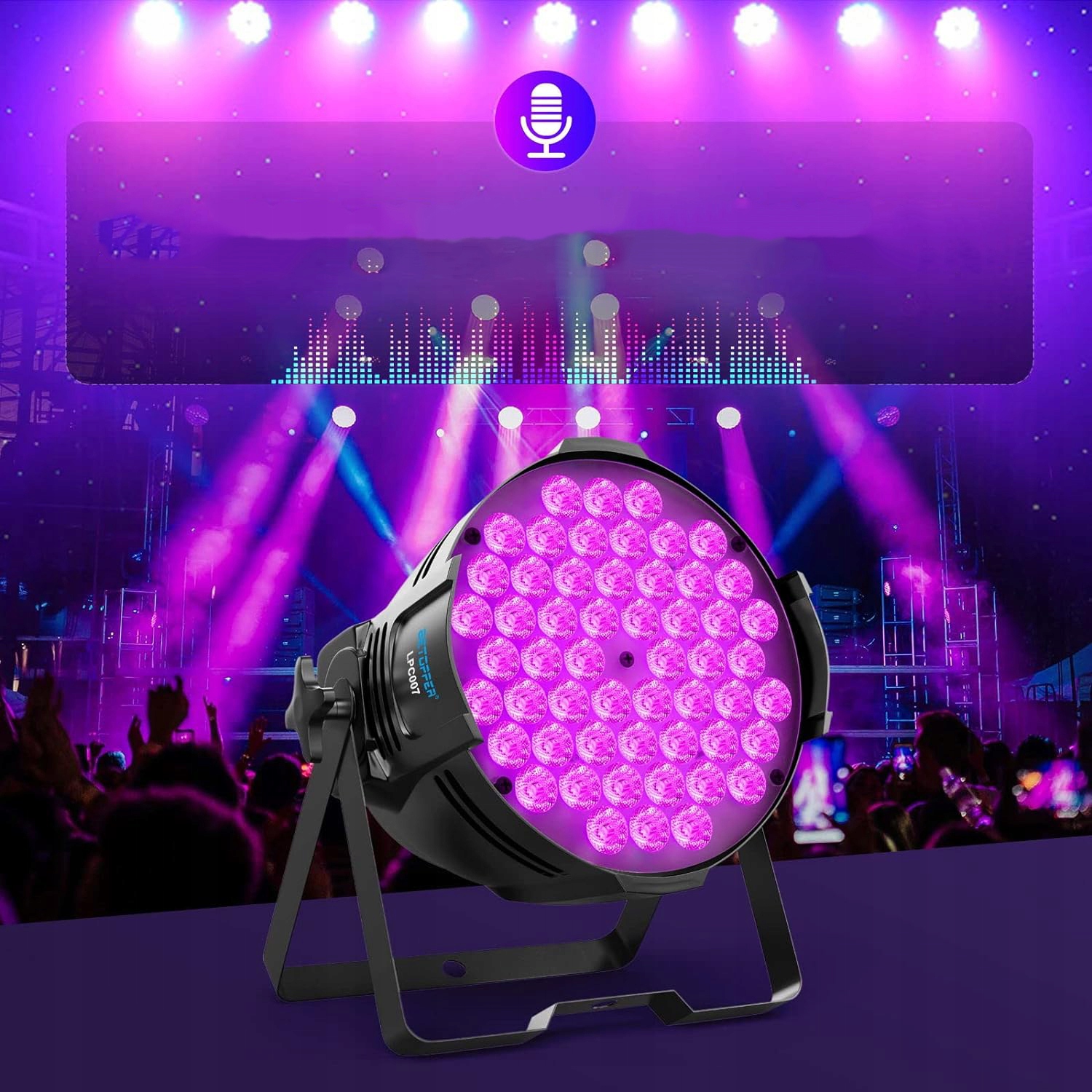 【Различные режимы освещения для вечеринок】Серия светильников Betopper LPC par Light имеет насыщенный цветовой эффект и функции для различных нужд. Статический цветовой режим (красный/зеленый/синий и т. д.), сочетание цветов, режим изменения цвета, прыжки, стробоскоп, вариации и т. д. для разных случаев. Автоматический режим работы/режим звуковой активации/управление DMX/режим «главный-подчиненный» как для начинающих, так и для профессиональных световых игроков.