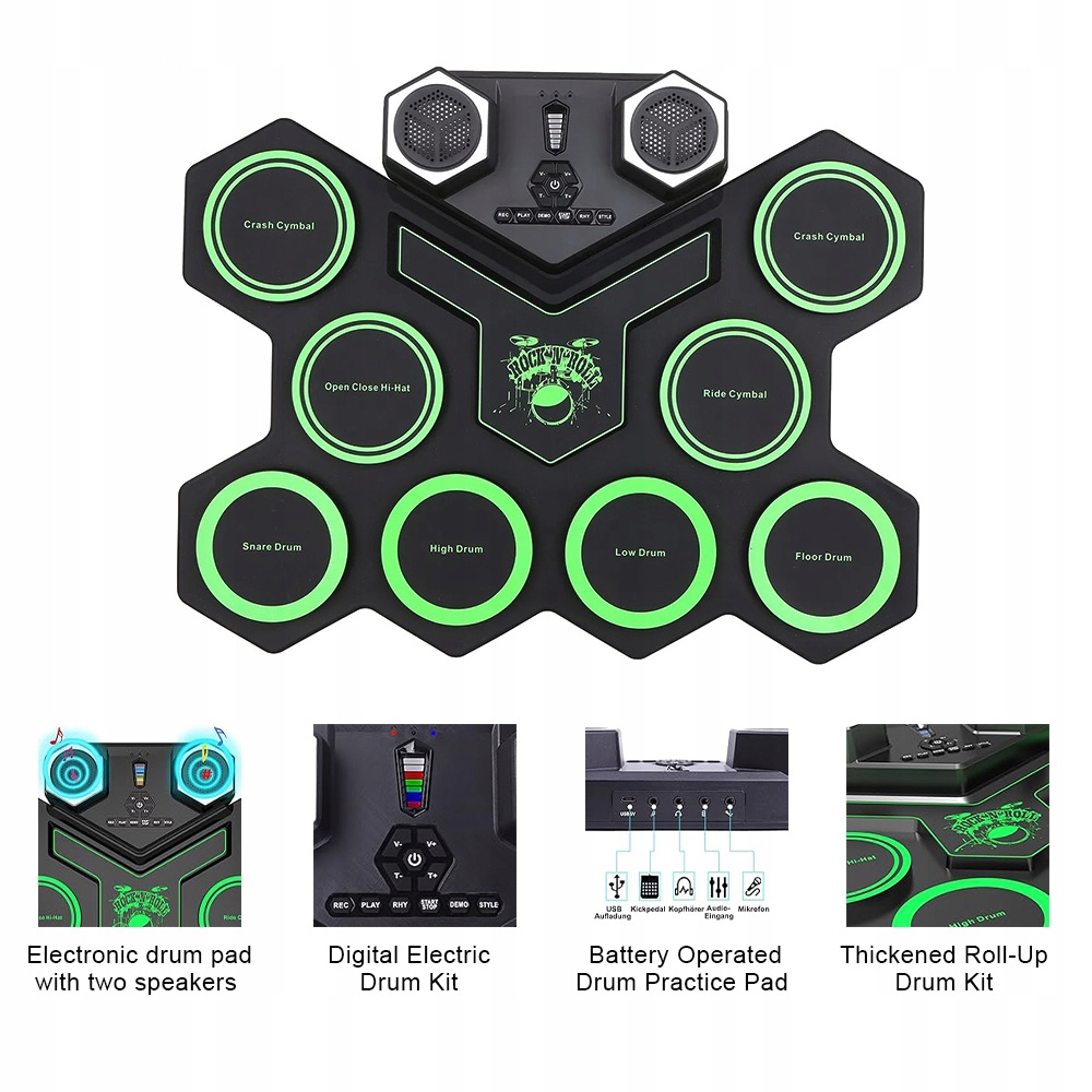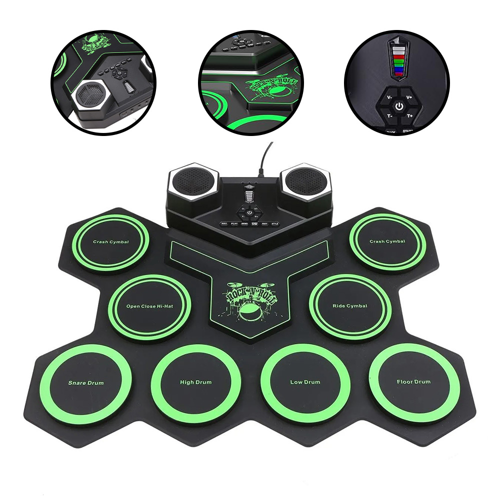 Свернутые портативные барабаны питаются с помощью USB или батареи, портативные, свернутые Электронные барабаны, которые являются отличным инструментом для всех любители ритмов, барабанщиков для начинающих, а также людей, которые Они путешествуют и не хотят отказываться от возможности играть в барабаны. Оборудование Это идеально подходит для обучения и игры. Это позволяет вам разрабатывать соответствующие моторные привычки, связанные с удержанием и движением палочек, а также ритмичными.