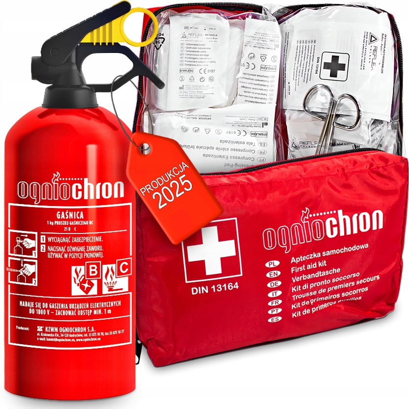 ✅ Порошковой огнетушитель для автомобиля 1 кг + автомобиль на комплект первой помощи DIN13164 H1>