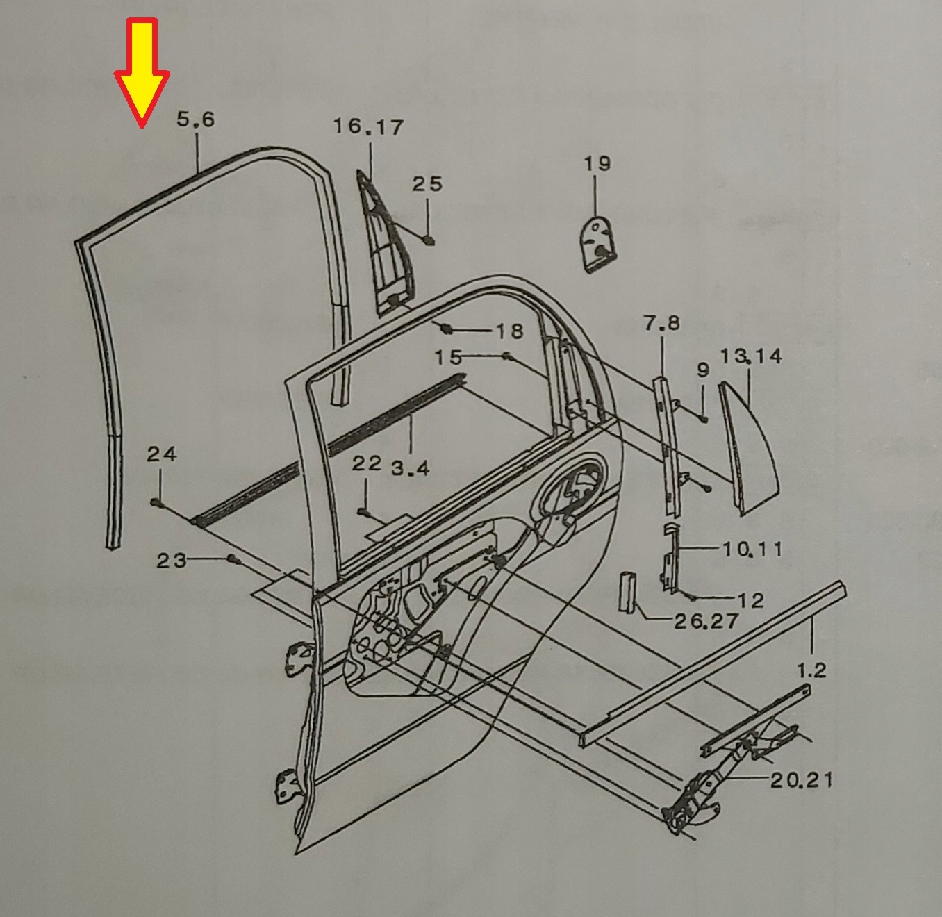 ПРОКЛАДКА НАПРАВЛЯЮЩАЯ ЗАДНЕГО СТЕКЛА, MATIZ, ОРИГИНАЛ
