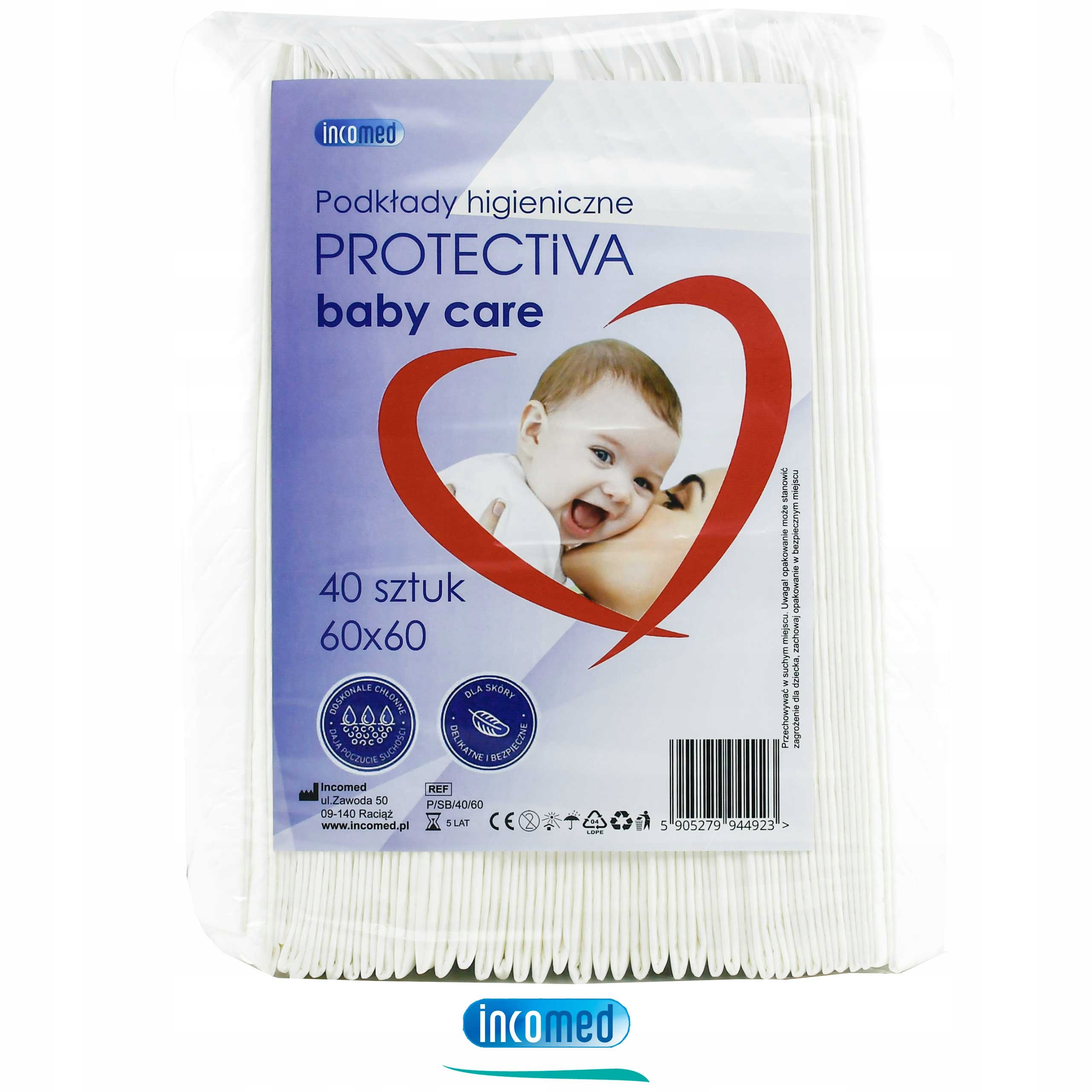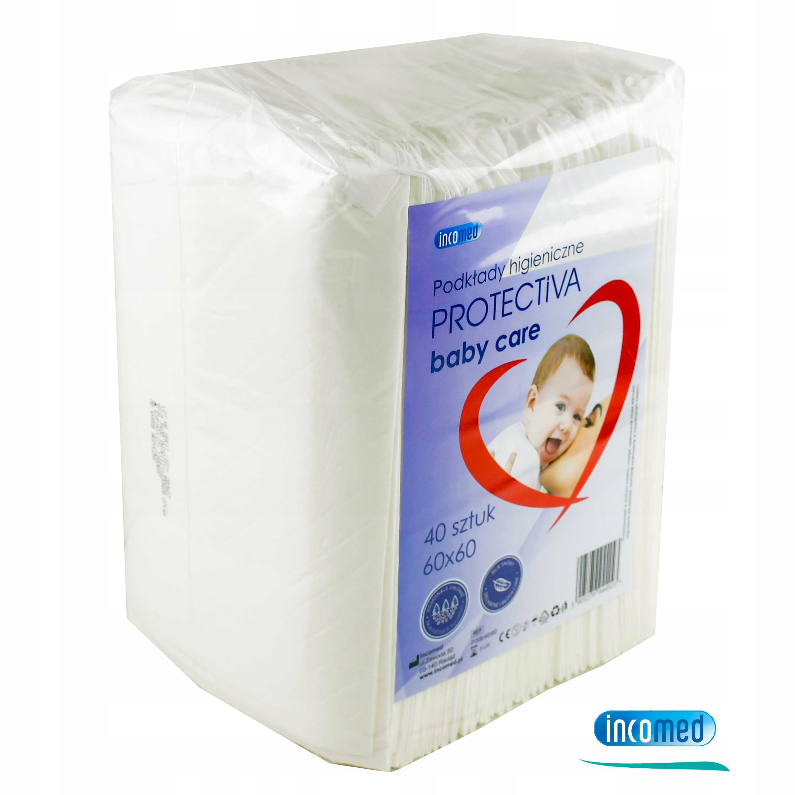 ПРОКЛАДКИ ГІГІЄНІЧНІ 60х60см АБСОРБІННІ ПЕРЕНЯЖКИ PROTECTIVA BABY CARE 40шт