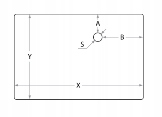 Мы можем сделать отверстие/отверстия, например, для компьютерных кабелей. Все, что вам нужно, это при оформлении заказа указать размеры согласно приведенному ниже эскизу.