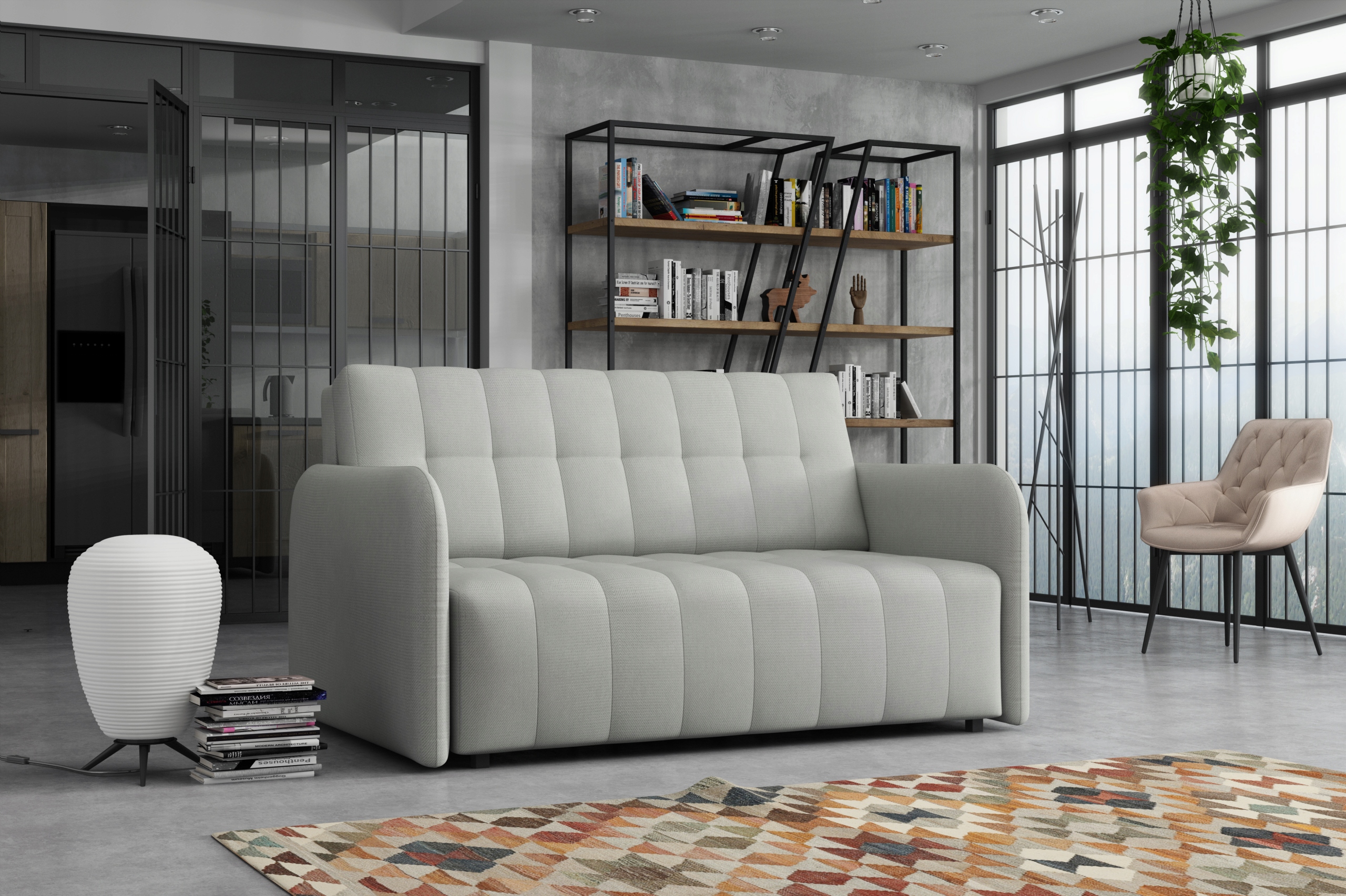 viga характеризуется большой и четной поверхностью сна, дополнительно оснащен практическим контейнером для постельных принадлежностей, благодаря которой он идеально подходит для детской, молодежной комнаты и будет идеальным дополнением для общих деталей и предложит дополнительное пространство для хранения текстиля. Декоративные элементы в виде сшивания и стегания в сочетании с возможностью выбора ткани из многих модных цветов позволит вам интегрировать мебель в любой интерьер. Диван отличается компактными размерами - он охватывает небольшую площадь по сравнению с пространством, предлагаемым после развертывания. Другим преимуществом являются узкие стороны - они сжигают всю твердую структуру, и их измерение не занимает слишком много места. Целое дополняется эстетической отделкой VIGI с каждой стороны, которая позволяет вам устанавливать диван в любой точке, не покрывая его спину - свободный диван.