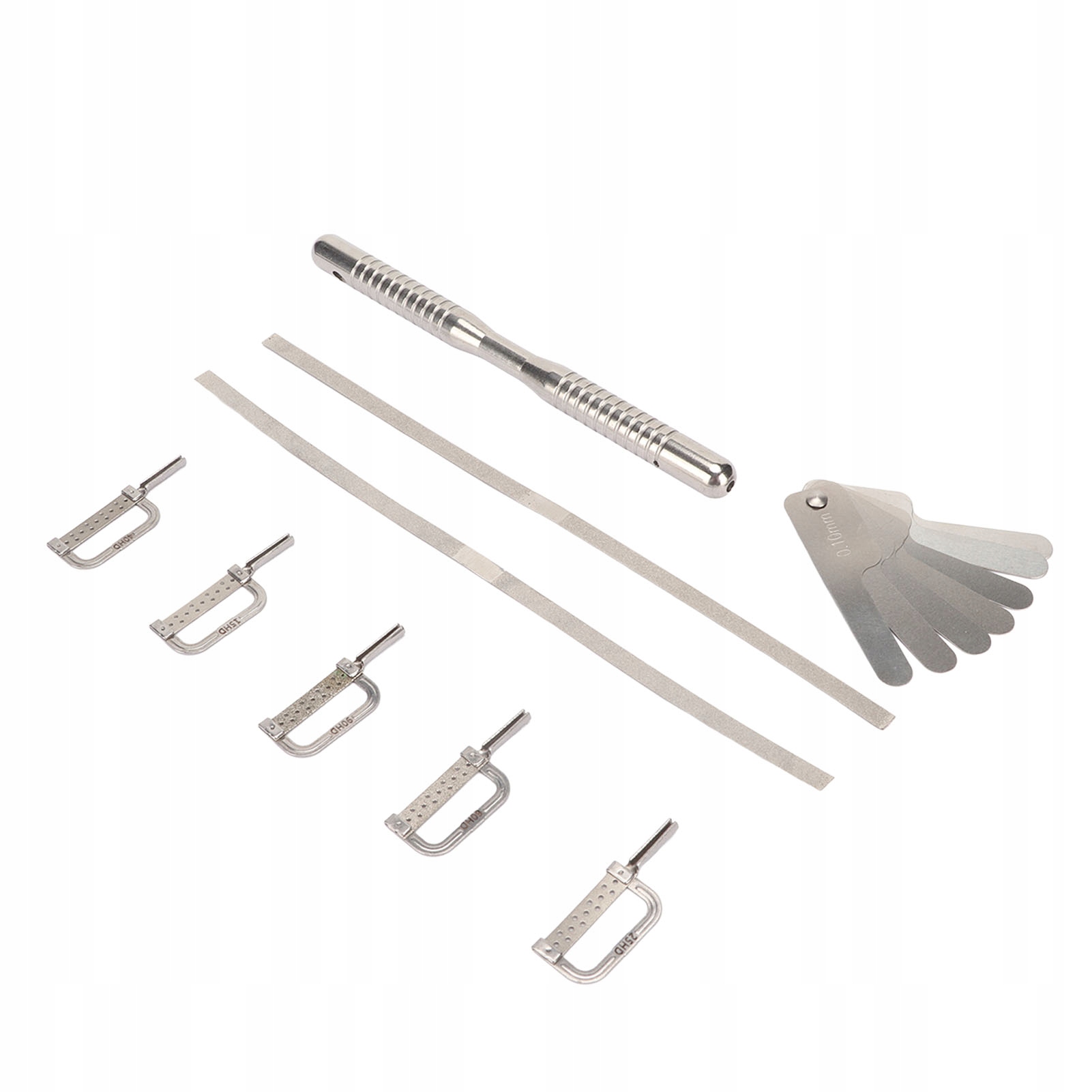 1. Улучшение пространства: комплект по восстановлению эмали, используемый для создания большего пространства между зубами, чтобы улучшить выравнивание зубов, чтобы подготовиться к ортодонтике. Красивые зубы: набор полосок, которые уменьшают межзубную эмали, помогают улучшить внешний вид зубов и изменить их форму, чтобы получить лучшие эстетические результаты. Для выравнивания: эмалирующие полоски могут удалять внешнюю эмаль между двумя соседними поверхностями зубов, чтобы получить дополнительное пространство для выравнивания зубов. Пакет содержит: с стоматологическим путем, 5 кусочков эмалированных полос, однопользой полировки, двойной польской бары, ручка полоска и хранения. Нержавеющая сталь: эмалирующие полосы изготовлены из нержавеющей стали, прочной и долговечной, их можно очистить при высокой температуре и высоком давлении, устойчиво к ржавчине и прочности