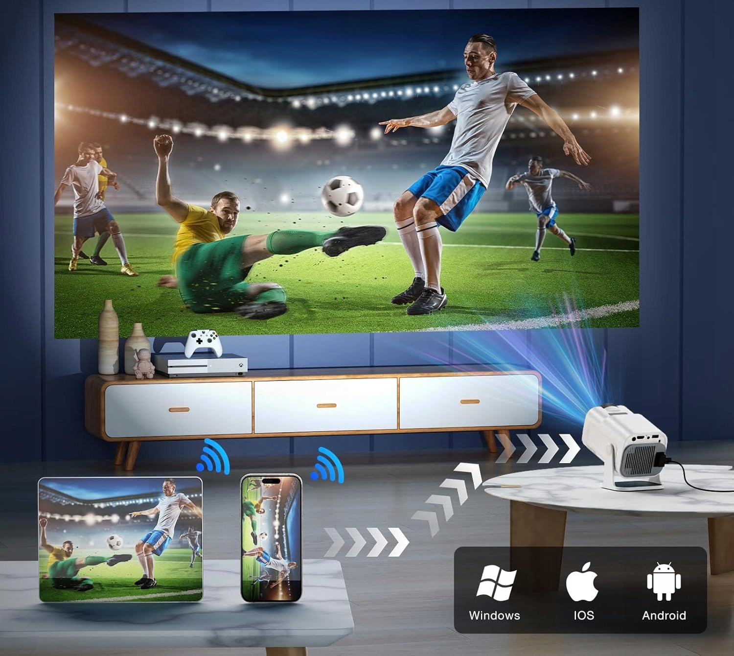 ✅Встроенный WiFi 2,4/5 ГГц - смотрите фильмы со смартфона, планшета или компьютера без необходимости подключения проектора с помощью кабелей. Работает как с Apple IOS, Android, так и с Windows.