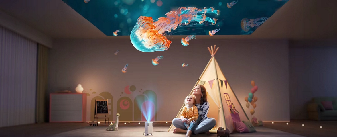 Благодаря функции проецирования на потолке вы сможете насладиться просмотром фильма под открытым небом или в спальне. Создавайте уникальные вечера кино в совершенно новой среде