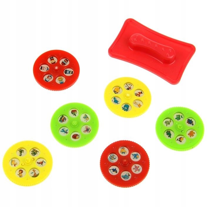 - 6 сменных дисков для проектора, на каждом по 6 рисунков: вкл. наземные, водные и летающие животные и транспортные средства, фрукты, фигурки в профессиональной форме, насекомые, динозавры