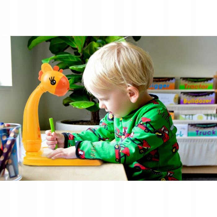 Проектор-жираф — идеальное решение для малыша, который любит рисовать. Доска с проектором, на которой отображаются 36 рисунков, заинтересует каждого маленького художника. Детям, которые только начинают учиться рисовать, будет очень интересно воспроизвести красивый рисунок в разных цветах. Благодаря такой забаве ребенок тренирует руку и учится проводить линию, чтобы нарисовать все, что захочет. А благодаря проектору создаются детские рисунки различных персонажей, красивых наземных и водных животных, быстрых автомобилей идеальных форм и цветов.