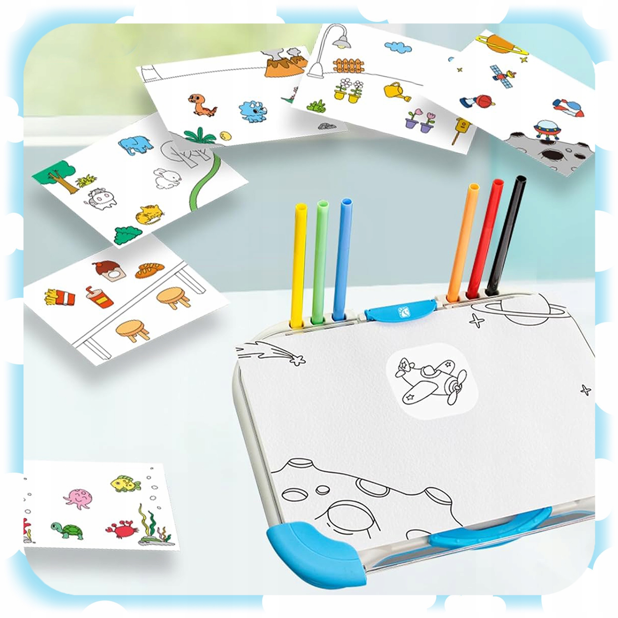 ✔️ Богатый набор шаблонов и аксессуаров - 6 маркеров, 12 шаблонов для копирования, листы А4 и красочные материалы фоны - готовы к использованию сразу после распаковки.