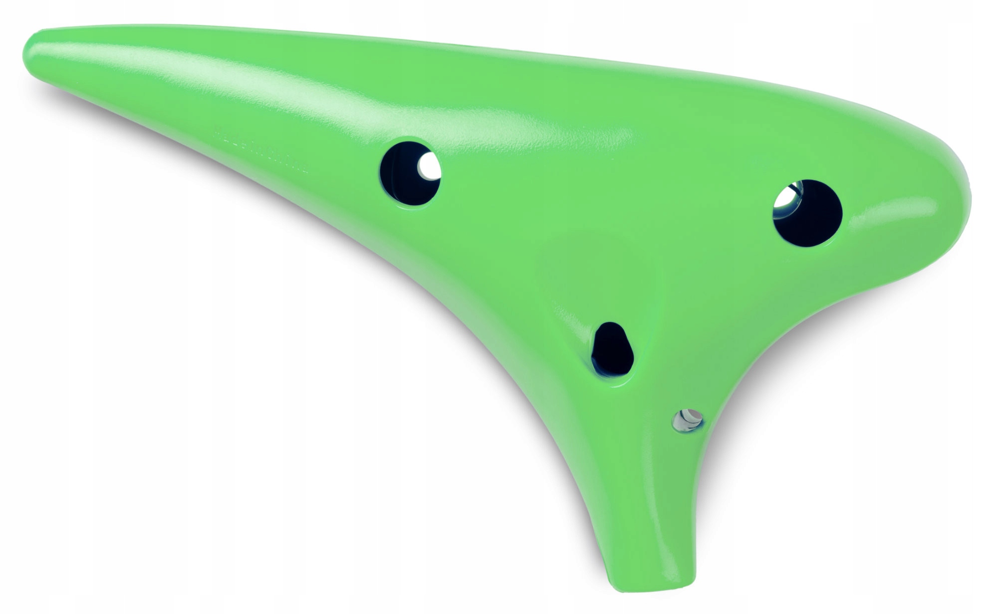Окарина привлекательного зеленого цвета из прочного пластика в настройке альто до с тональным диапазоном до''-фа'''. Инструмент имеет в общей сложности 12 тонов и очень мягкий и теплый звук.