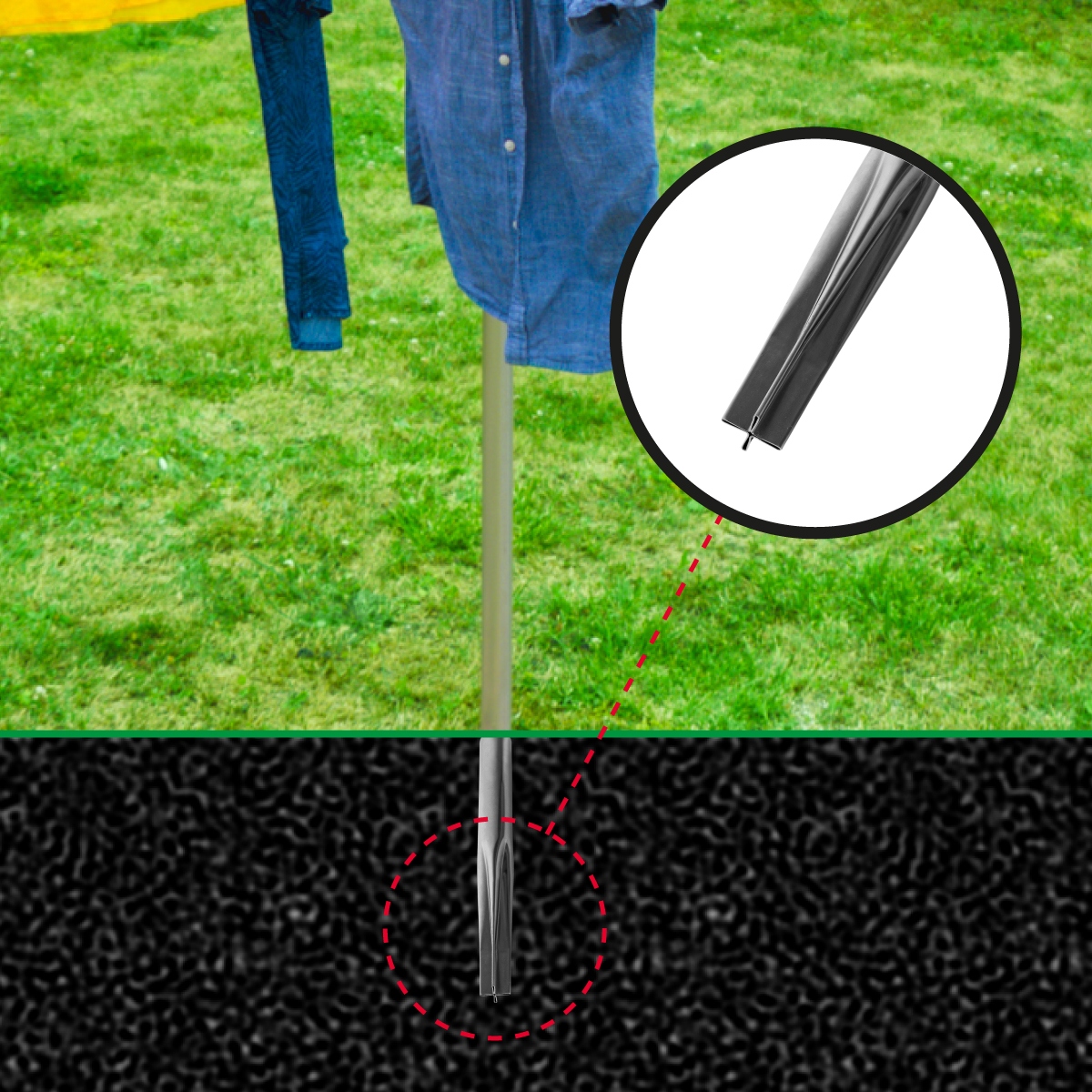 В комплект входит заземляющий штырь, который является идеальным решением для быстрого и установить сушилку на землю в любом месте без необходимости бетонирования. Просто воткните его в землю.