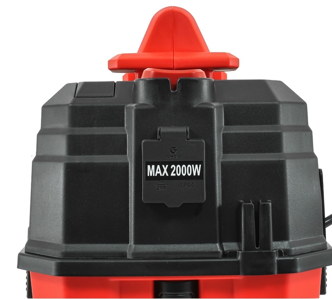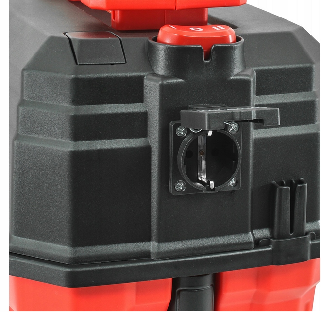 Встроенная розетка, расположенная в верхней части крышки пылесоса, используется для подключения электроприборов и инструментов. Его можно использовать, например, со шлифовальной машиной для штукатурки, шлифовальной машиной по дереву и другими электроинструментами с отверстием для пылеудаления.