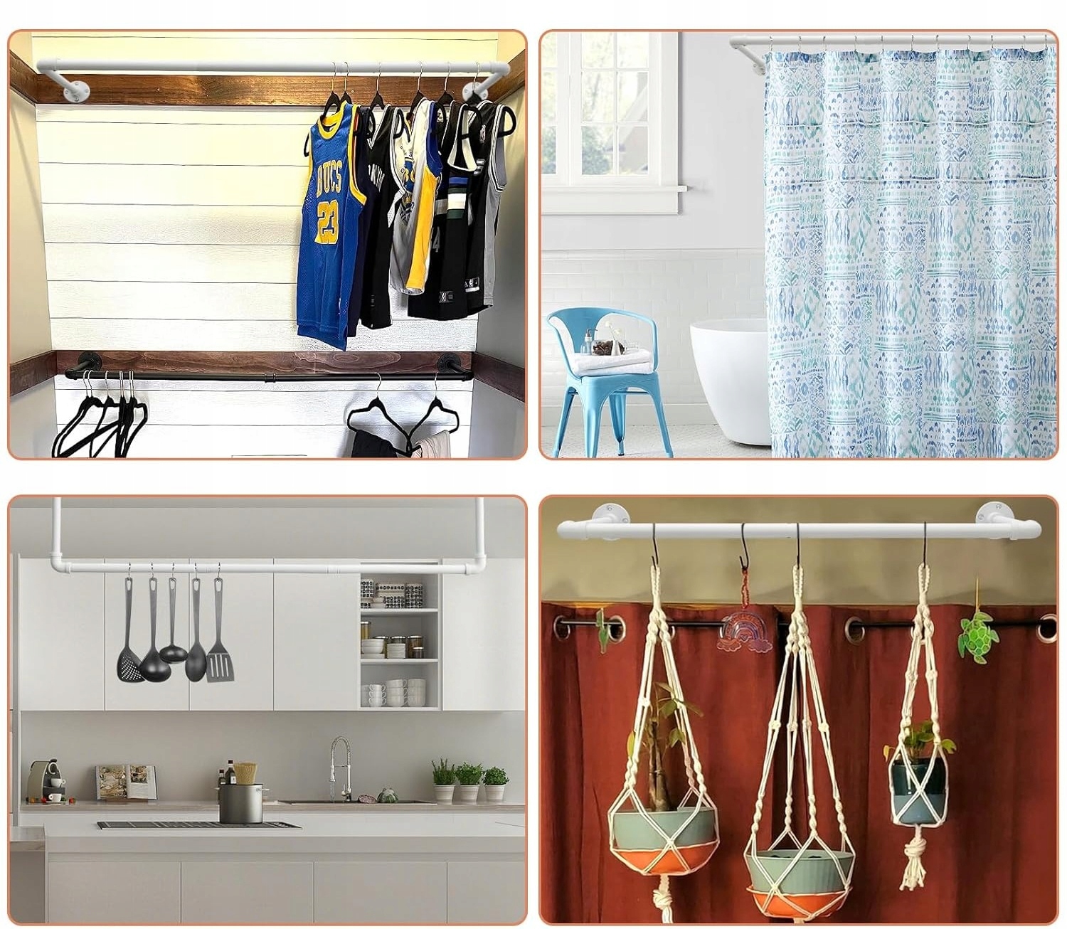 - Высокое качествоНастенная штанга для одежды изготовлена из прочного черного ковкого чугуна, достаточно прочного, чтобы выдержать вес до 60 кг. Он оцинкован и обработан защитным покрытием, которое повышает устойчивость к коррозии и предотвращает образование ржавчины, обеспечивая долговечность и долговечность использования.