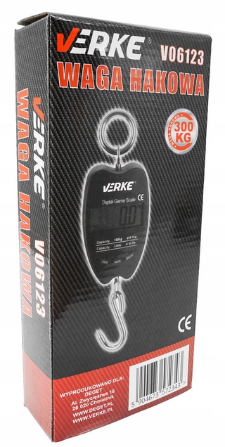 Высококачественные крюковые весы польского бренда VERKE гарантируют точное измерение веса различных предметов. Благодаря небольшой, но прочной конструкции модель V06123 будет оценена по достоинству на складах, в магазинах, портах и транспортных компаниях.