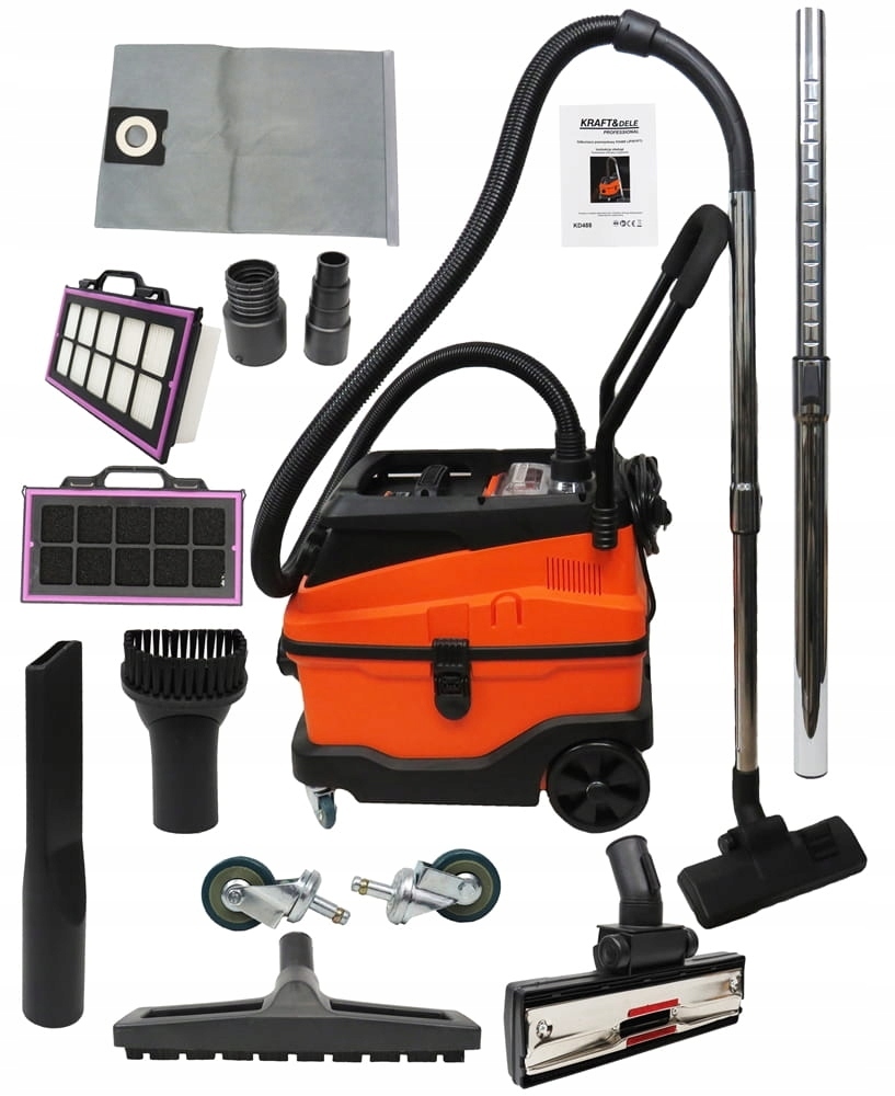 Промышленный пылесос KRAFT&DELE – это оборудование высокого класса. В нем используется надежный и мощный двигатель мощностью 1600 Вт, способный достигать максимальной силы тяги 18 кПа.