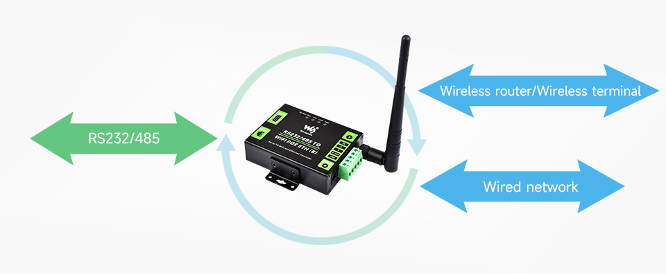 RS232/485 в порт Ethernet и WiFi Только один из портов RS232 или RS485 может одновременно передавать данные в порты Ethernet и WiFi.