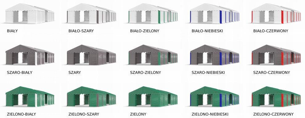 палатки состоят из модулей с длиной 2, 4, 6, 8, 10 или 12 м и 1, 2-метровые расширения.