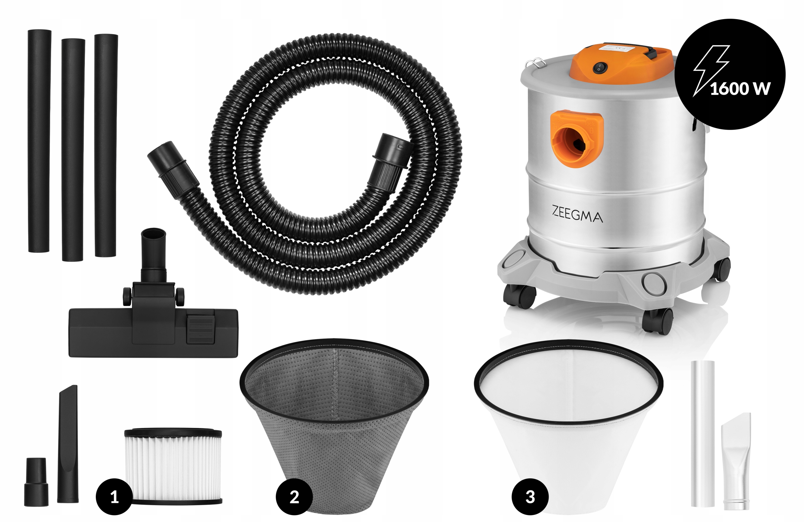 Промышленный пылесос Zeegma Zonder Pro Ash Silver оснащен двигателем мощностью 1600 Вт. Он успешно всасывает пыль, пепел и даже мусор! Идеально подходит для строительных площадок, уборки котельных, гаражей или при ремонте!